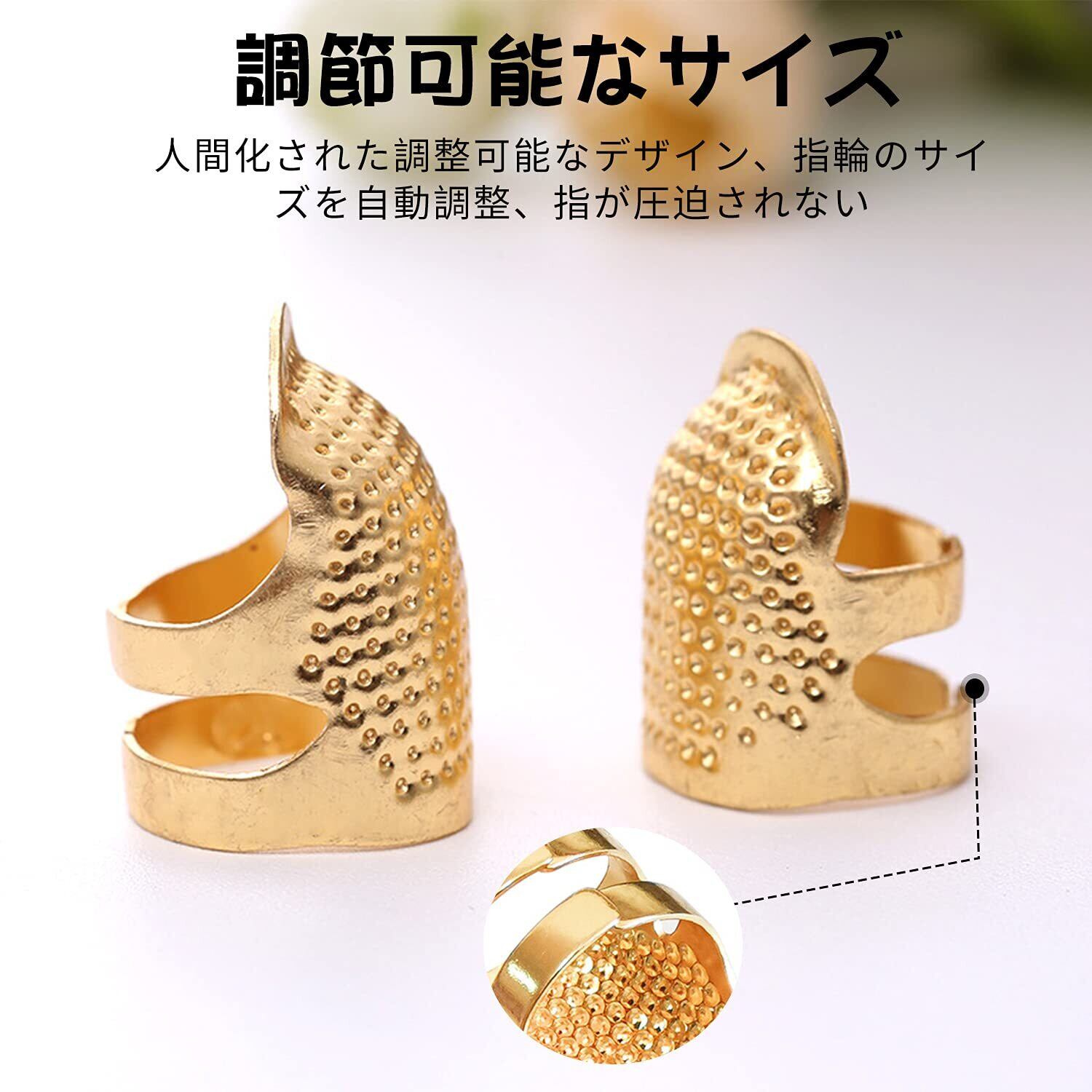 指ぬき 指プロテクター (4個入) シンブル 手芸 裁縫道具 滑り止め 裁縫用 ゆびぬき 手芸用品 フリーシンブル 縫製 裁縫 指保護 DIYツール ソーイング用 刺繍 (ゴールドSサイズ2つ、ローズゴールドMサイズ2つ) 金色