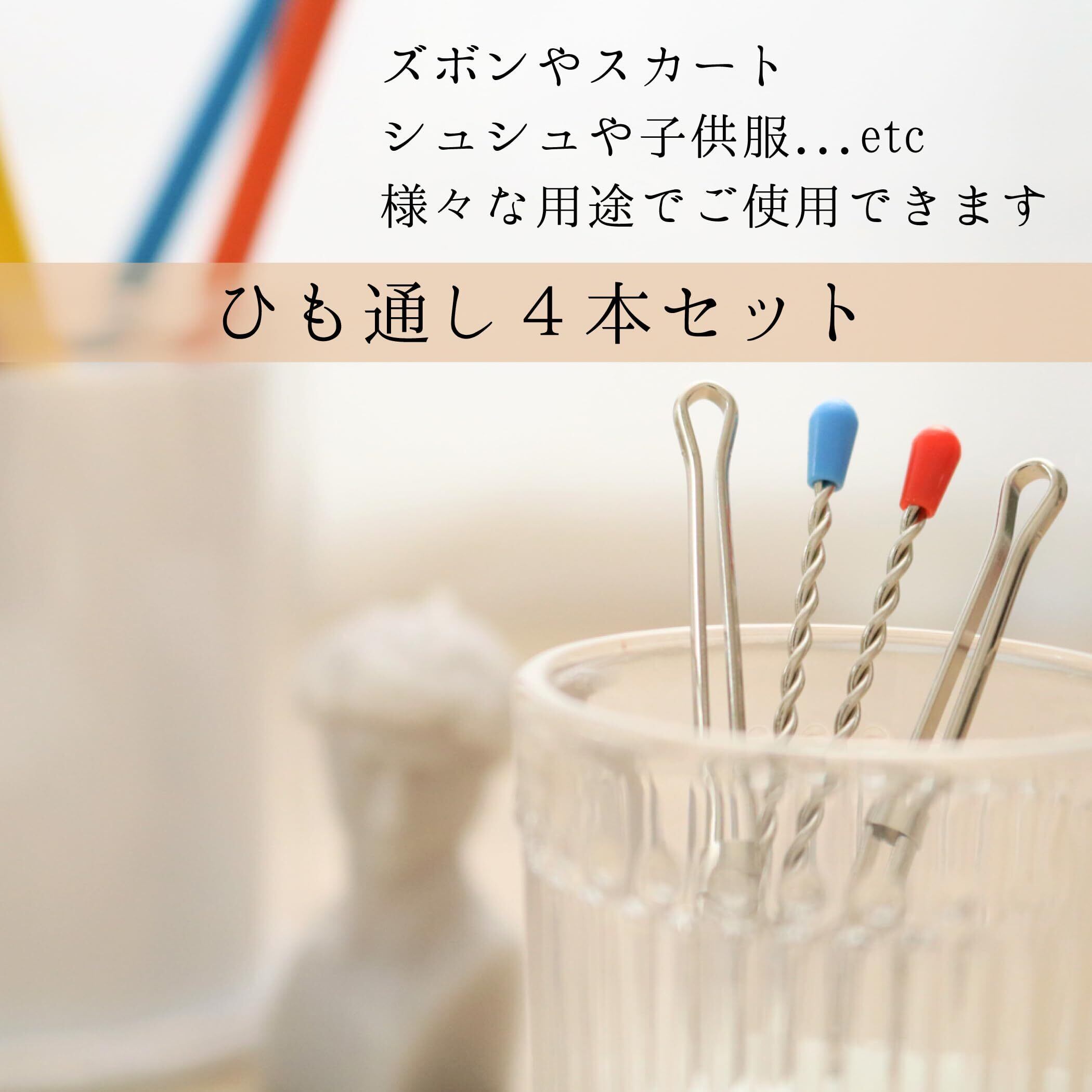 TUKUMO(つくも)ひも通し4本入り ハサミ式 玉付き ゴム紐 ゴム通し 紐通し 手芸道具 裁縫