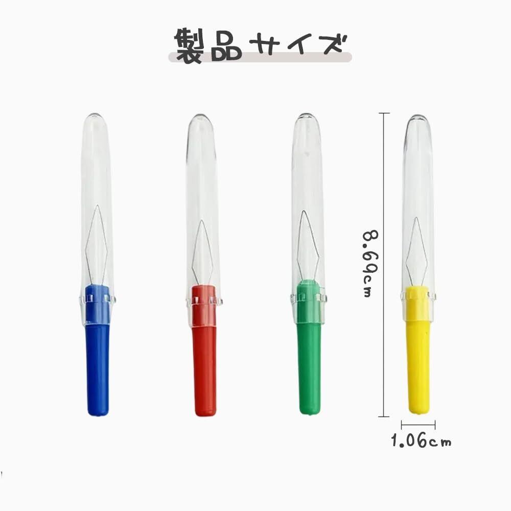 手芸用 針糸通し器 便利なカバー付き ひも通し器 ゴム紐通し 針糸通しツール 手作り DIY 裁縫道具 簡単糸通し 高齢者向け 4個セット (赤・黄・緑・青) 4色セット