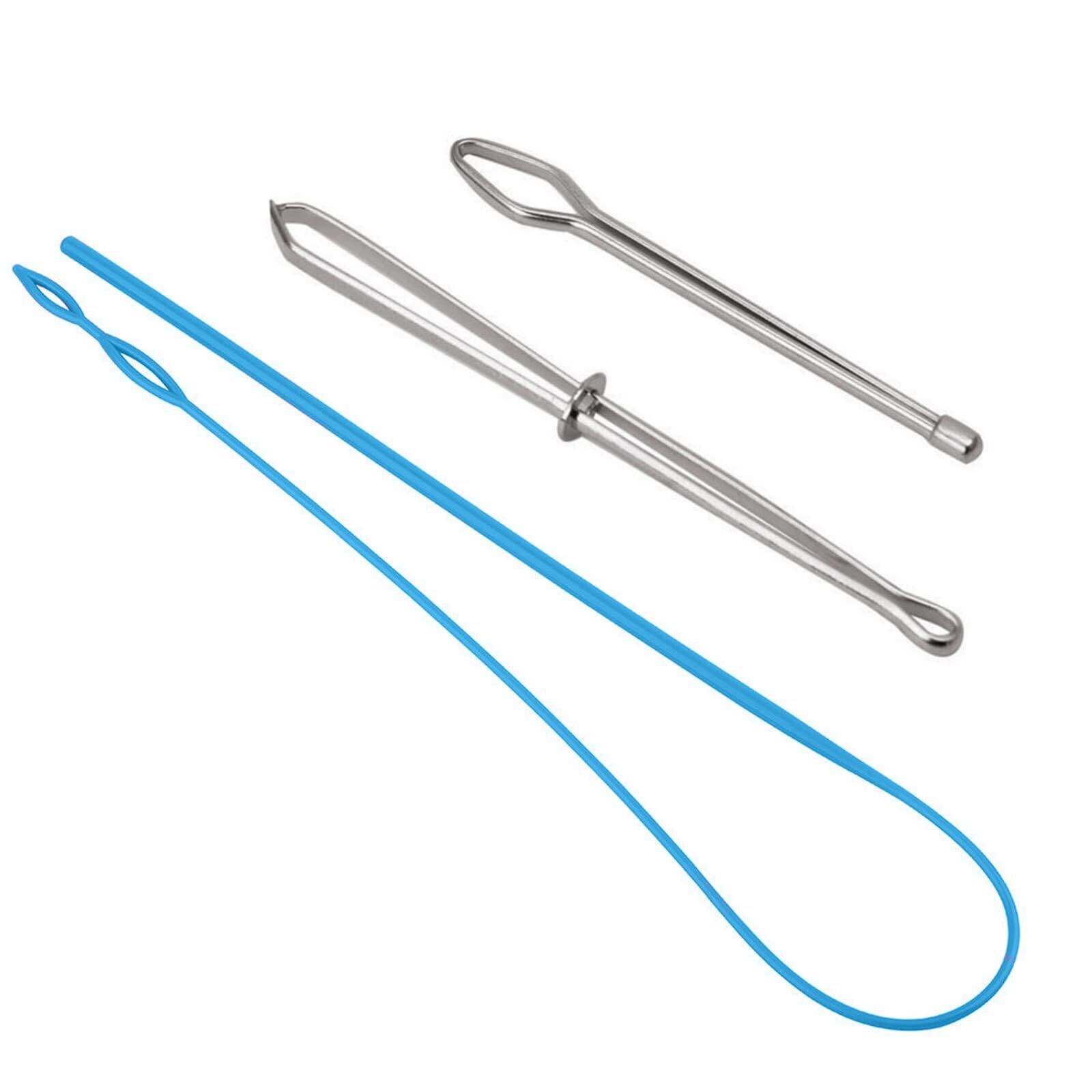 【パッケージ内容】: 紐通し 3本セットで、1本はプラスチックひも通し、1本はさみ式ひも通し、1本は玉付ひも通しとなっています。