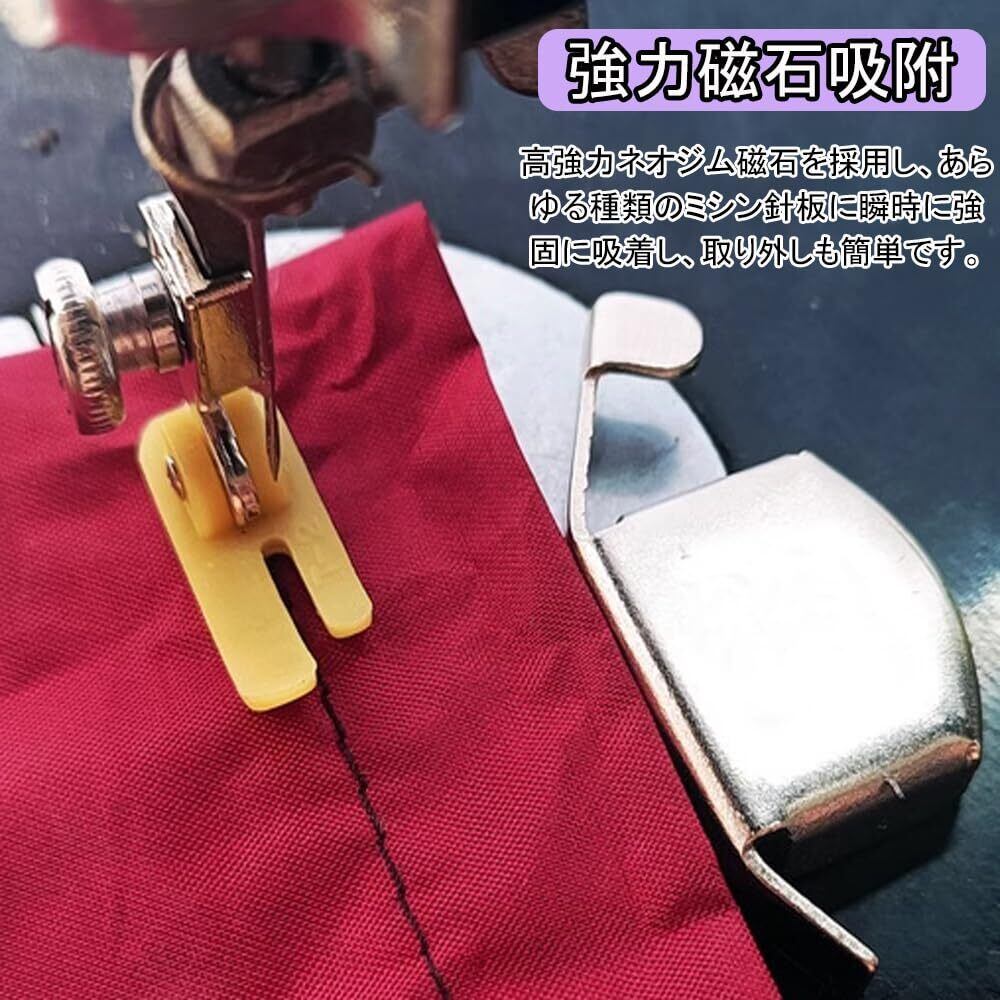 【強力磁石吸附】高強力ネオジム磁石を採用し、あらゆる種類のミシン針板に瞬時に強固に吸着し、取り外しも簡単です。従来のクリップ式定規よりも操作が格段に楽で、片手操作を可能にし。