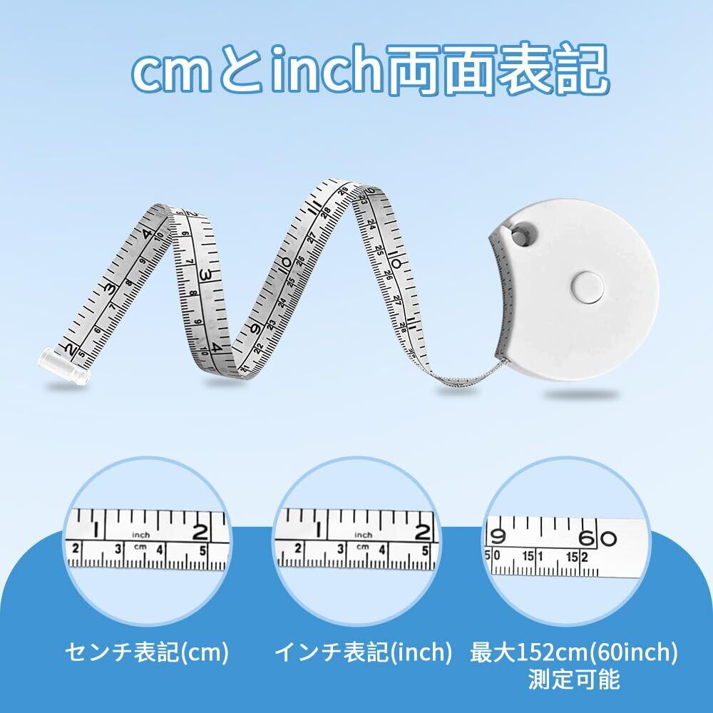メジャー 巻き尺 テープメジャー 2WAY・自動カード位置/ワンクリック帰原 バスト ウエスト 測定 裁縫 洋裁 メジャー 長さ150cm 軽量 片手操作 (ホワイト)