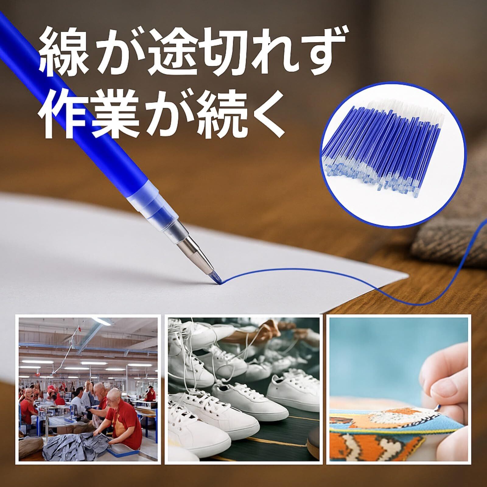 インクの出が均一で、線が途切れにくいため、裁断前の下書きや位置決め作業をスムーズに行うことができますので、アパレル現場、手芸教室、DIY制作にお使いいただくことができます。