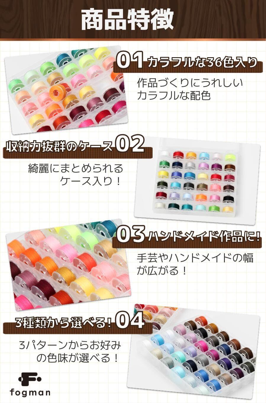 fogman 糸 ろうびき糸 色とりどり おしゃれ かわいい カラフル 手芸 ボビン 36色セット (中間色)