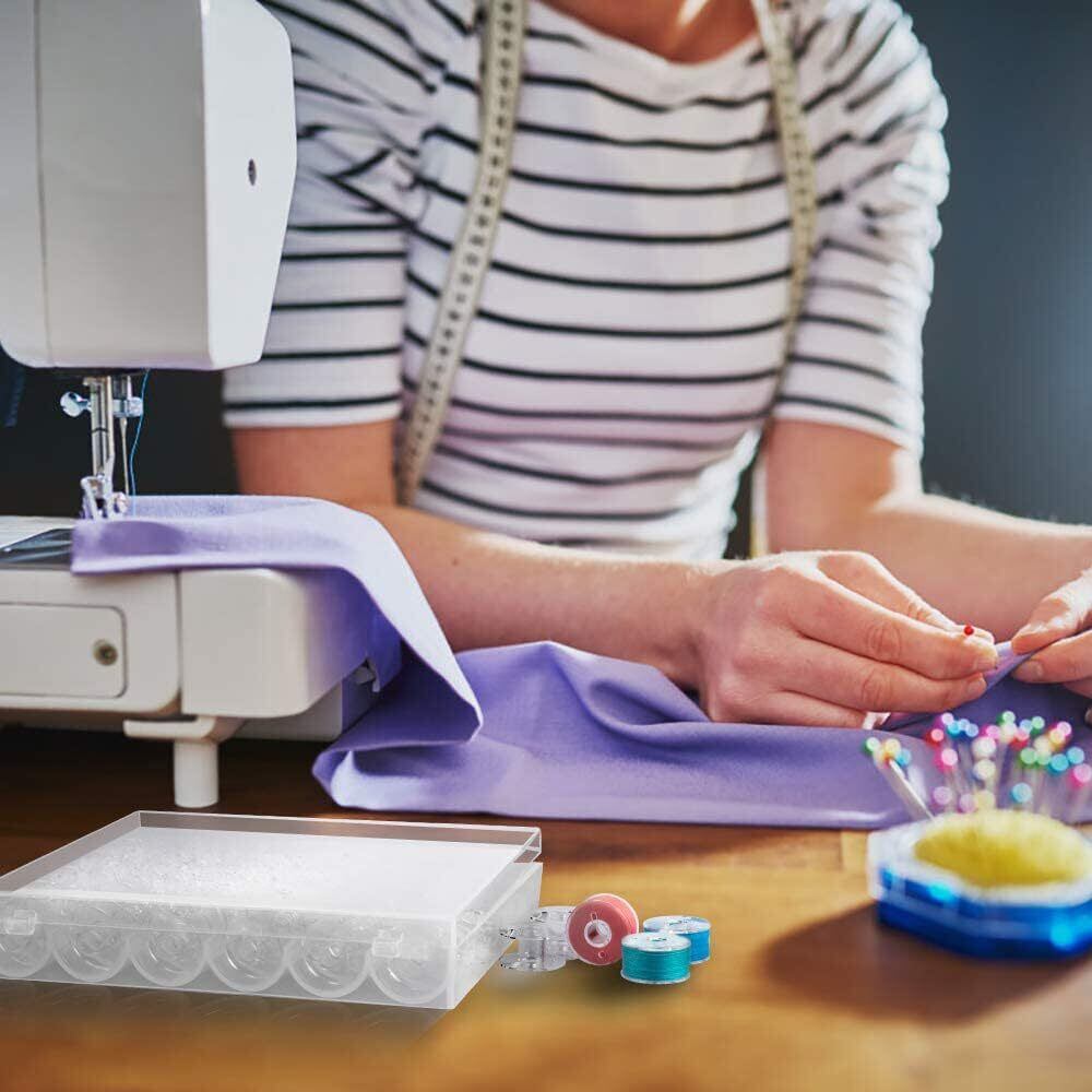 【収納に便利】異なる色の裁縫糸を巻きつけることができる、日常の裁縫需要を満たす。透明なプラスチック製の高品質ケースが付いています。1箱に25本のボビンが入る。各机種各仕様のボビンの収納に適しています!