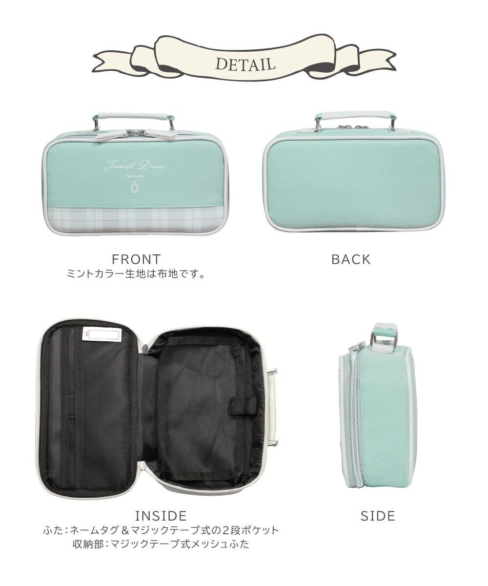 パステルカラーのミントグリーンが可愛いデザインのバッグです。バッグ外寸:約 24×14×6cm(ハンドル含まず)