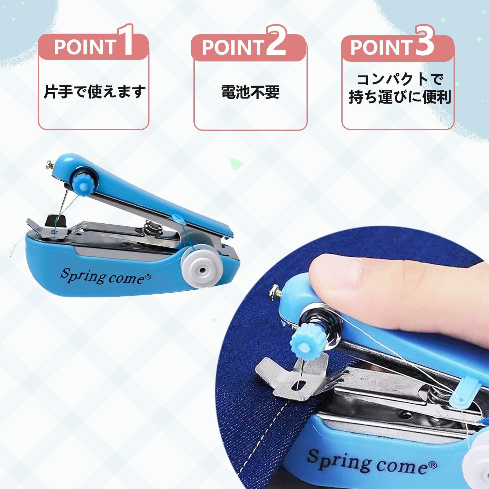 【多用途】衣類の補修やリメイク、DIY、ハンカチ・エプロンなど布製品のカスタマイズまで、幅広い用途に対応します。デイサ一ビスでの裁縫練習、イベント景品の制作、制服や作業服の裾上げ・パッチ付け、ほつれ直しなど、家庭·学校·幼稚園,高等学校など、さまざまなシ一ンで大活躍。ママのお手伝い裁縫アイテムとしてもおすすめです。片手で簡単に操作でき、初めは少しコツが必要ですが、慣れれば手放せない便利なアイテムになります。