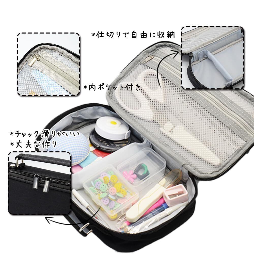 裁縫セット さいほうセット 小学生 男の子 女の子裁縫箱 ソーイングセット 携帯便利(Net-Black)