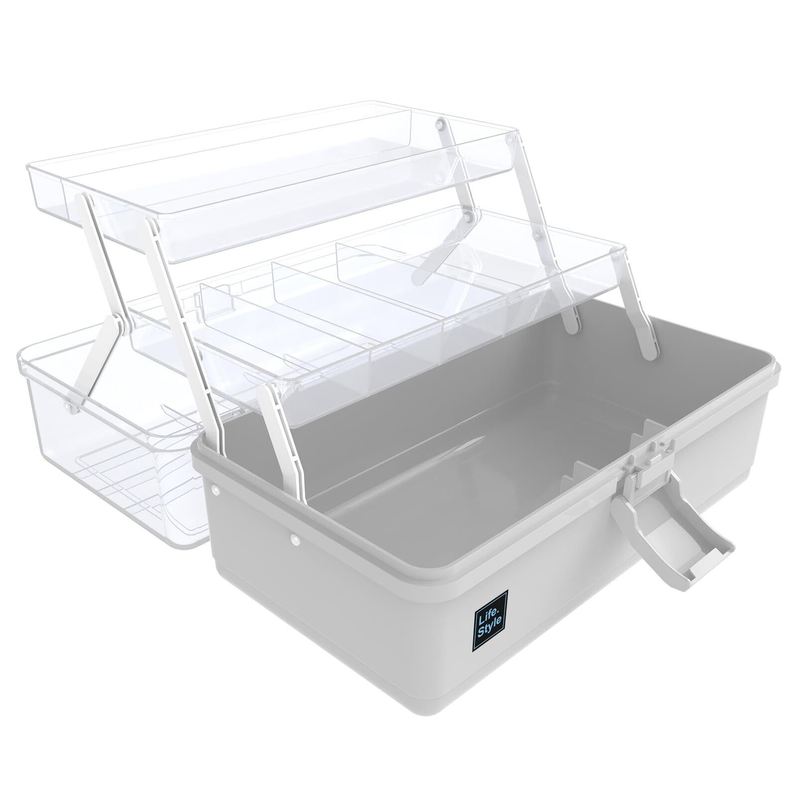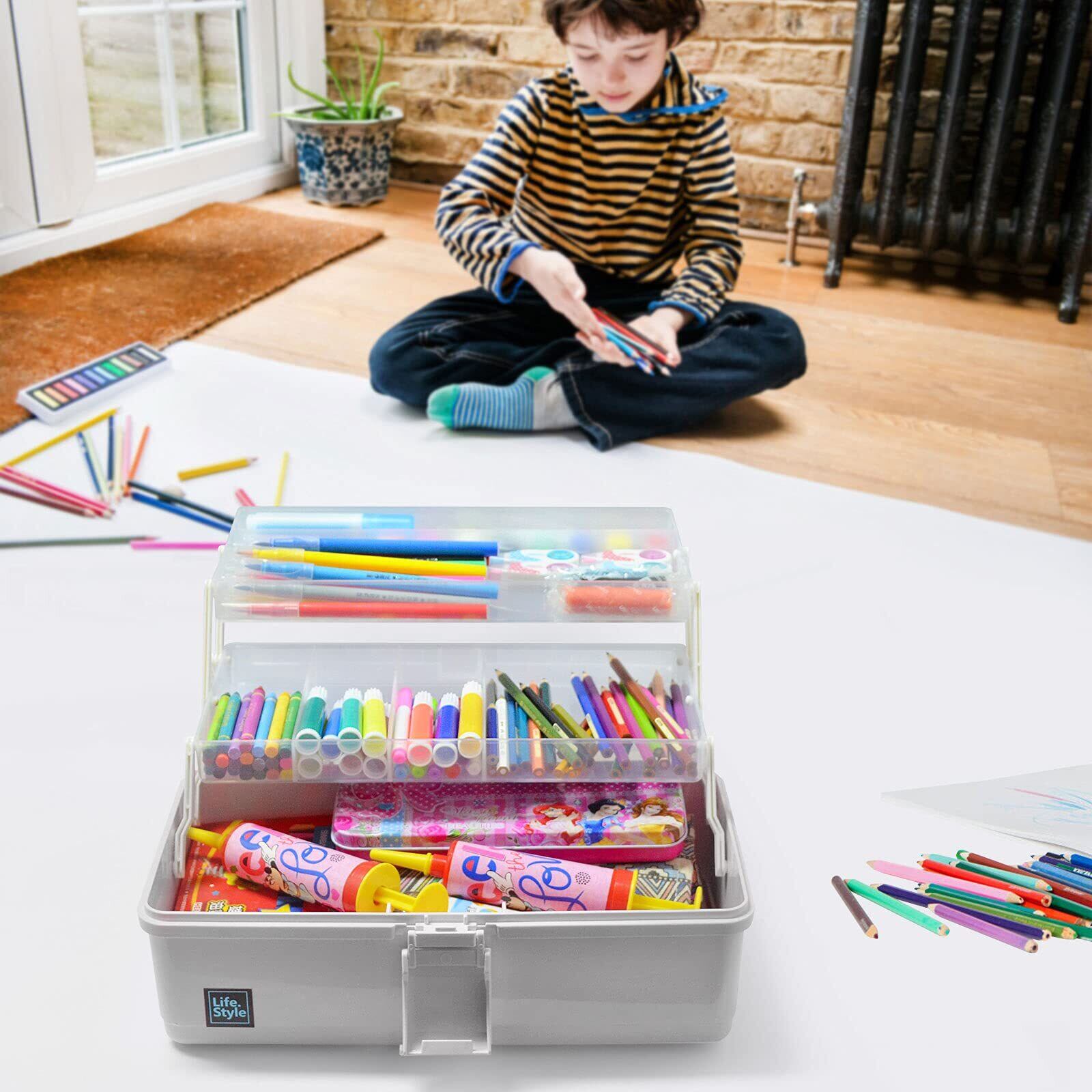【新着商品】画材収納、ハンドル付き13インチ3層プラスチック裁縫クラフトボックス、薬、ツール、化粧品、ペンの収納ボックス(グレー)