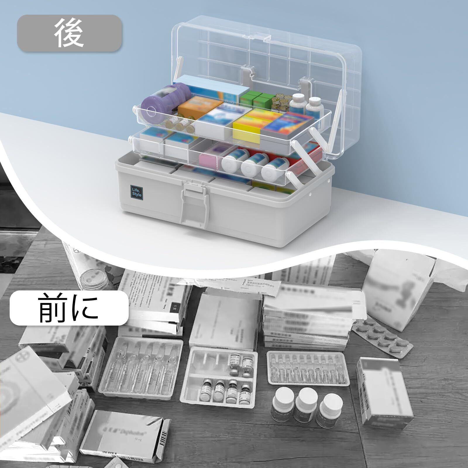 画材収納、ハンドル付き13インチ3層プラスチック裁縫クラフトボックス、薬、ツール、化粧品、ペンの収納ボックス(グレー)