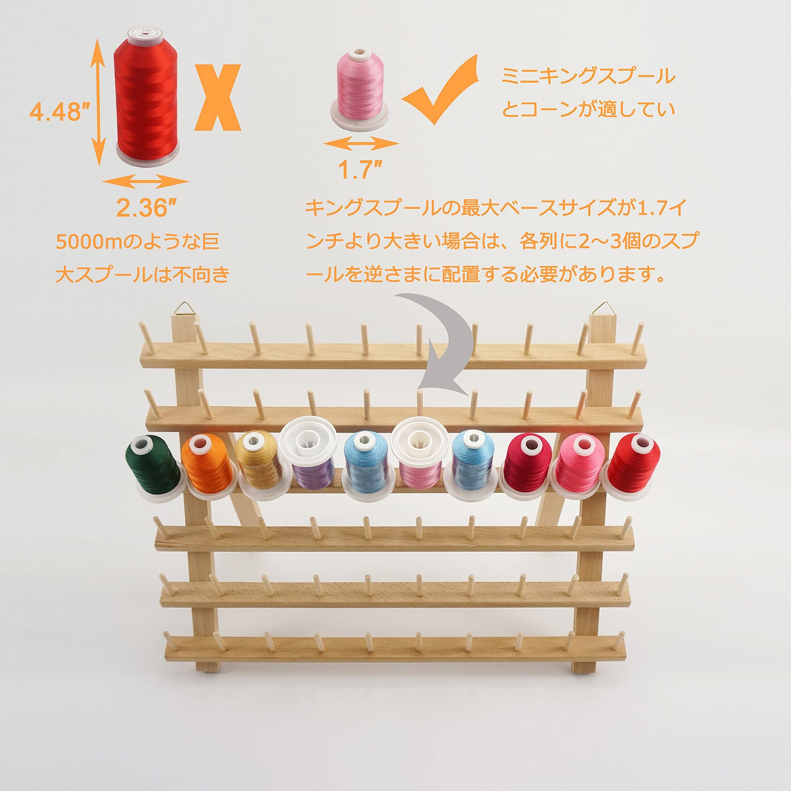 √ ほとんどのミニキングスプールとコーンに広く使用されています: この木製糸巻きラックは、すべての New brothreadの500m と 1000m ミシン刺しゅう糸、および の他のミシン糸販売業者に最適です。スプールの最大ベースサイズが 1.7 インチより大きい場合のみ、Floriani、Isacord、 Robison-Anton、の1000mスプールなど、ラックの各列を逆さまに 2 ~ 3 個のスプールを配置する必要があります。