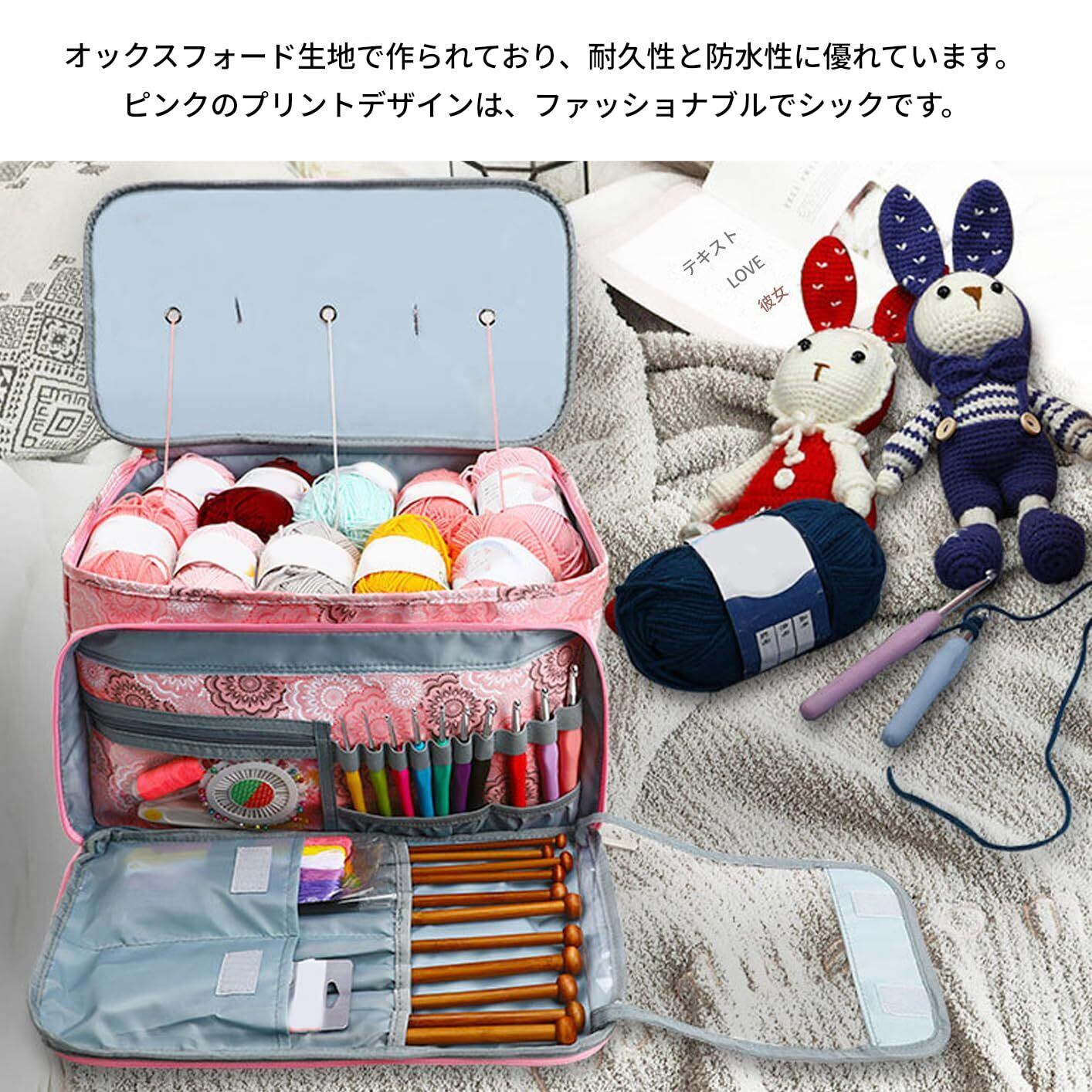 【大容量】大容量の収納スペースには、さまざまなサイズの毛糸やツールを収納でき、編み物作業に十分な収納スペースを提供します。