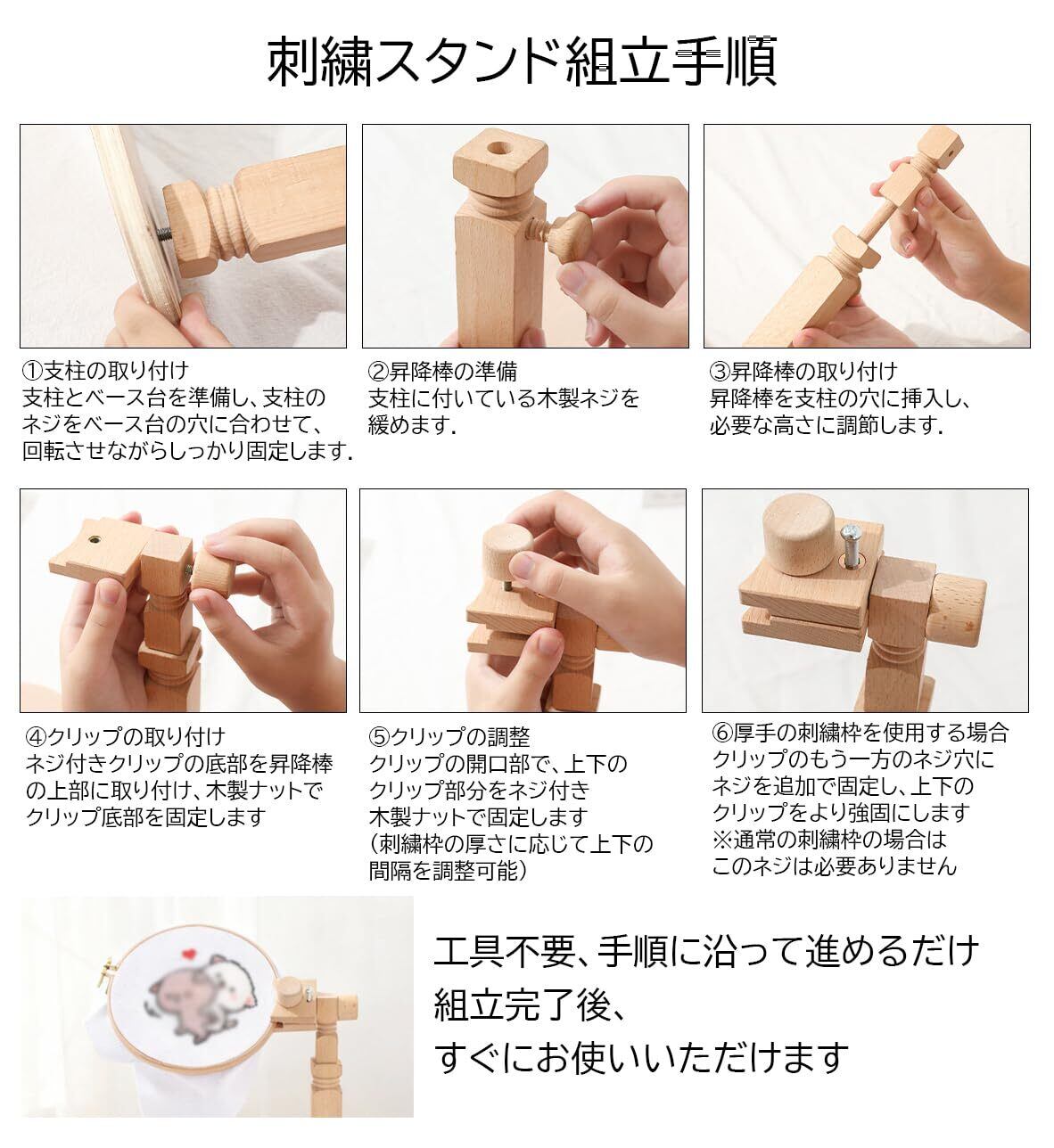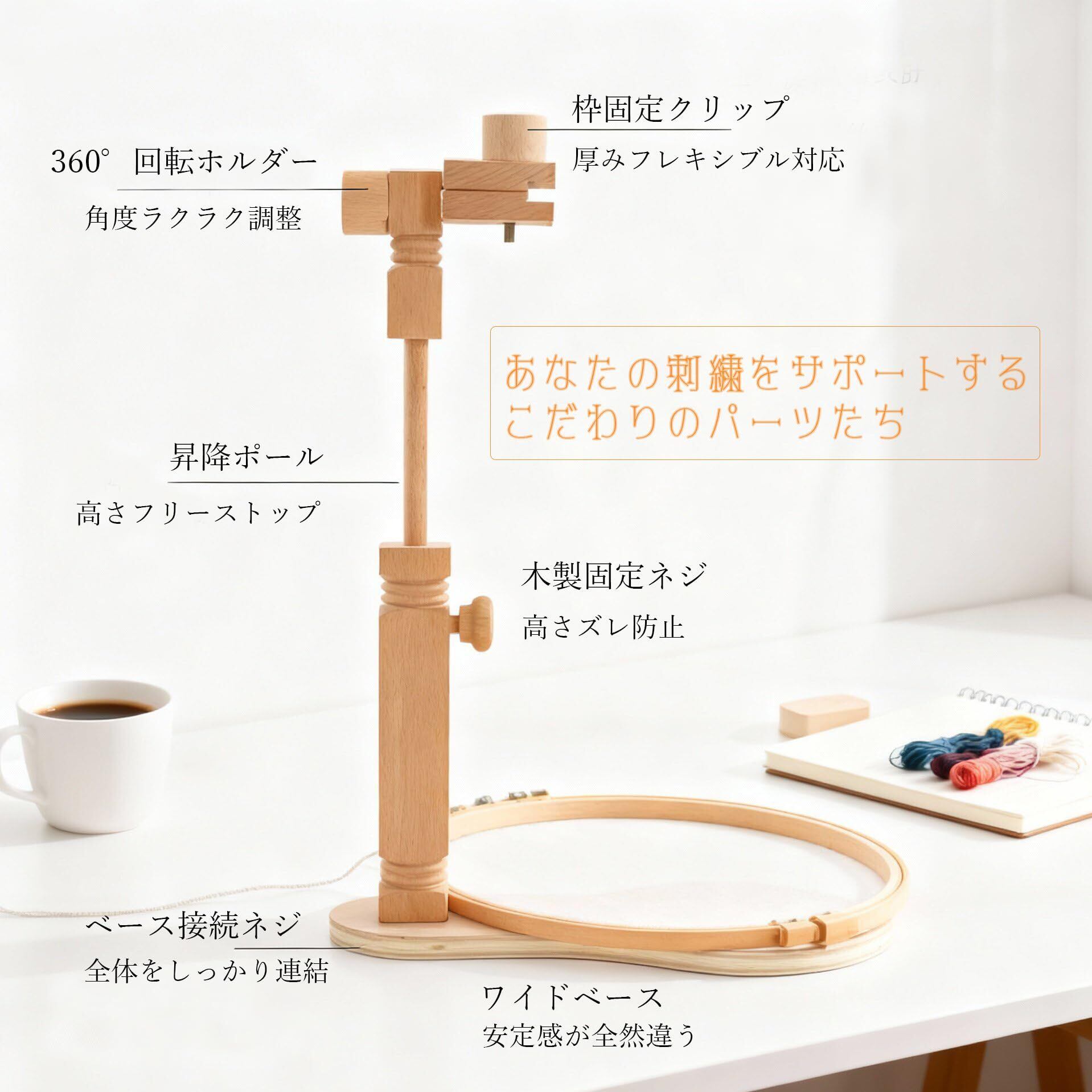 刺繍枠 スタンド 刺繍フレームホルダー 木製 調整可能 360度回転 手芸 クロスステッチフレームラック 調整可能な回転刺繍フレーム 木製スタンディングタイプ刺繍台 (刺繍枠は含まれません)