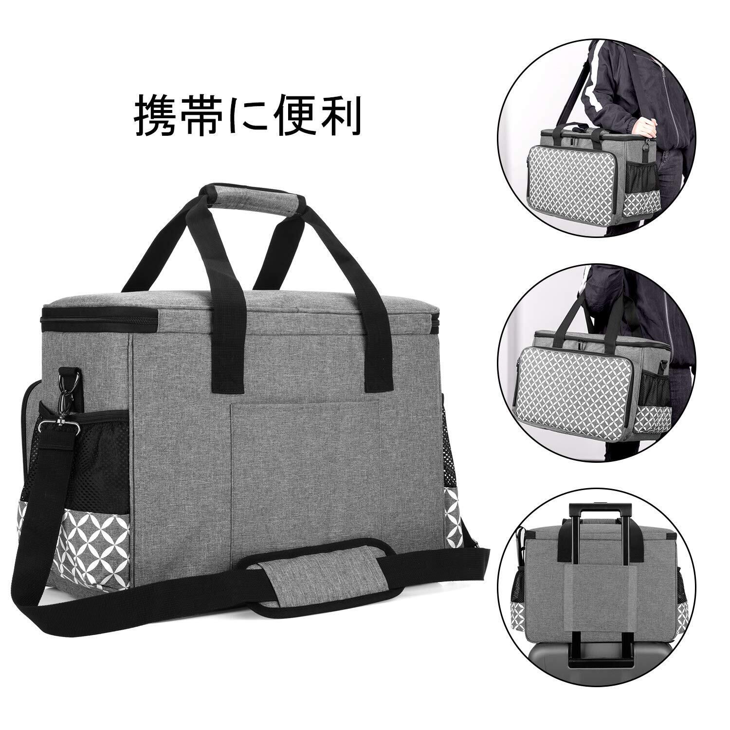 Yarwoミシンキャリングケース ミシン収納バッグ 硬い底板付き(グリッド付きグレー)