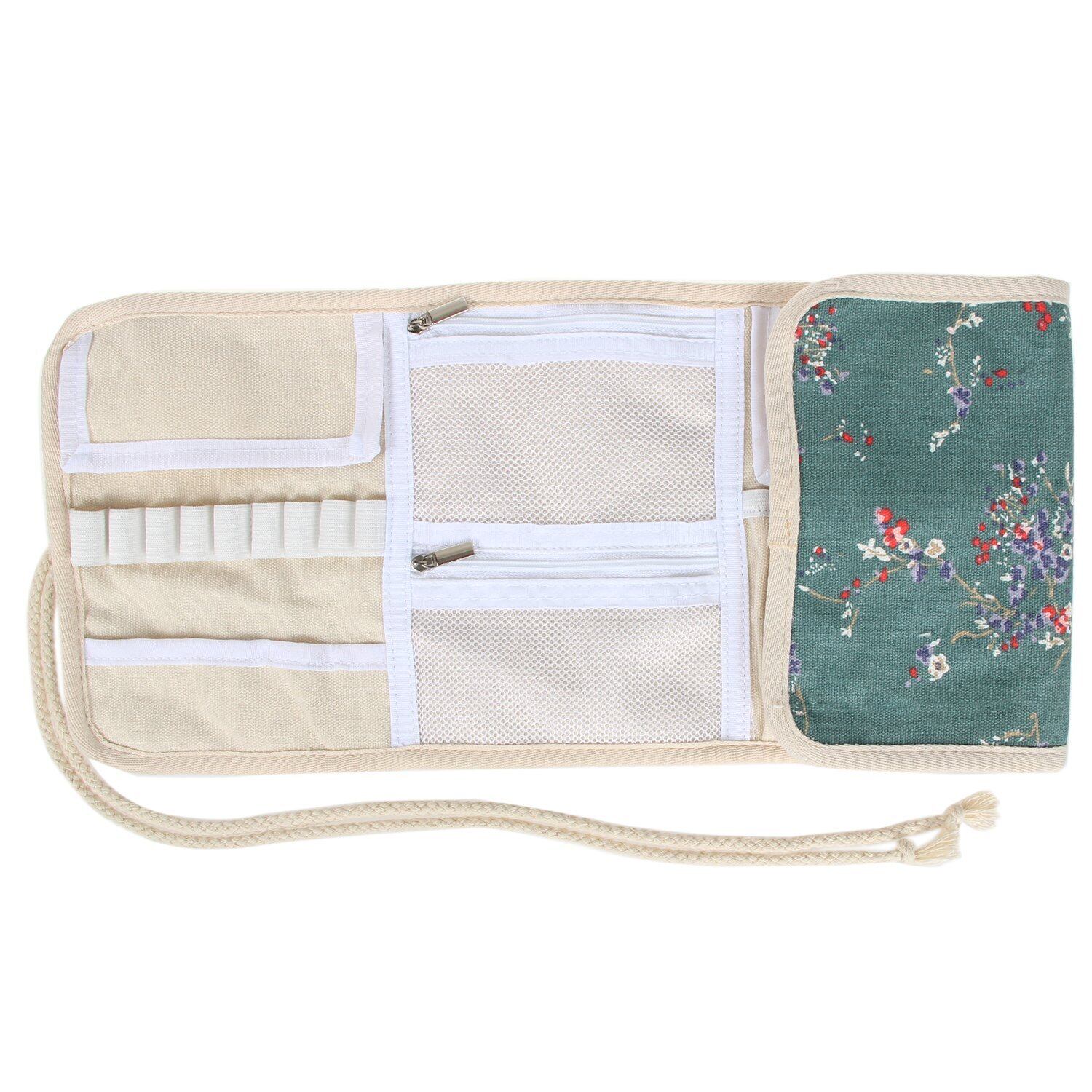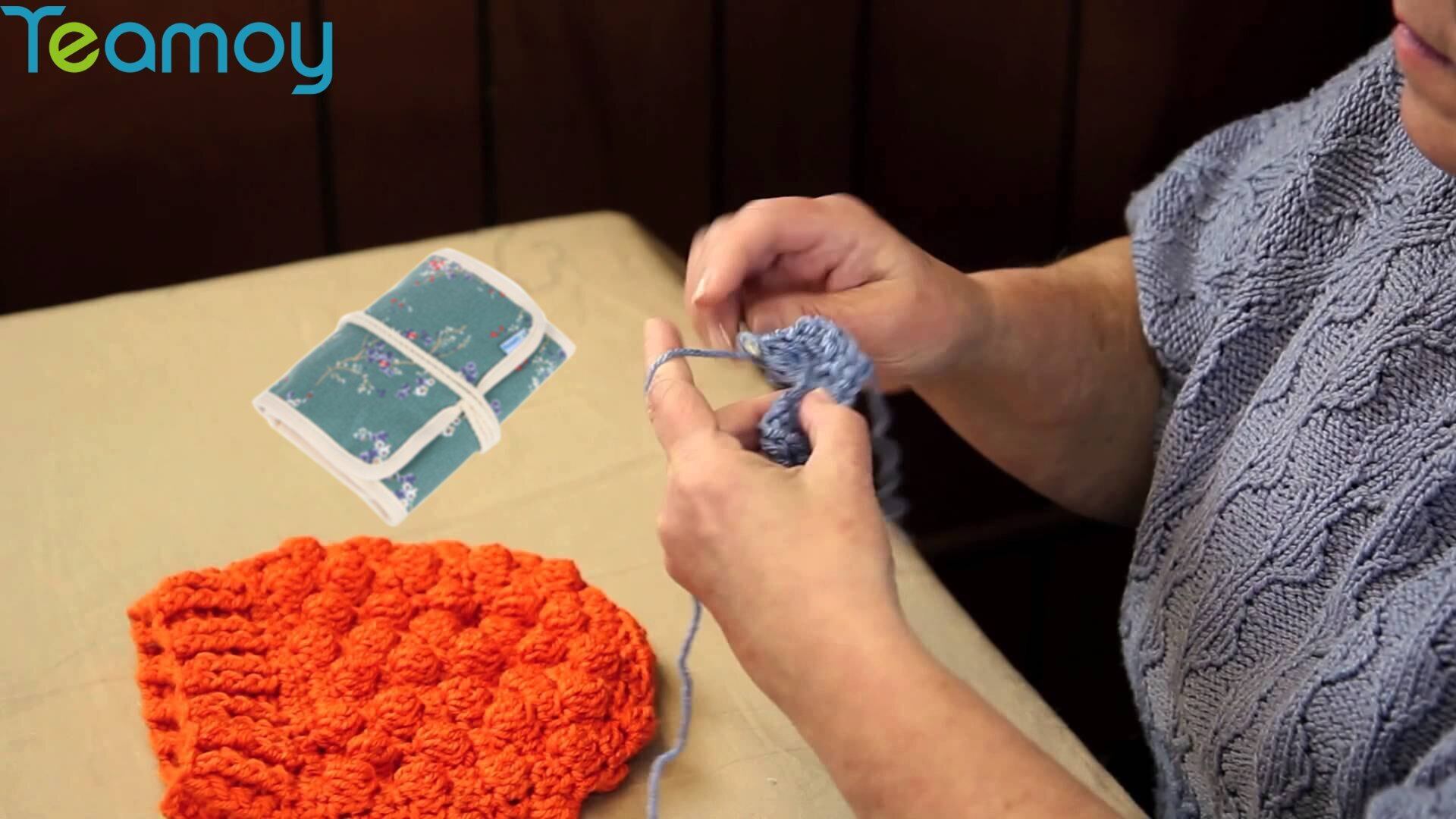 9本の太めゴムバンド、5本の中位ゴムバンド、5枚の長いスロットが付いて、アルミニウムかぎ針や竹製かぎ針やステンレス鋼かぎ針などの様々なかぎ針に対応できます。全てのバンドの下には滑りを止めるポケットがあり、上には先端を保護するカバーがありますので、かぎ針をしっかり保持出来ます。