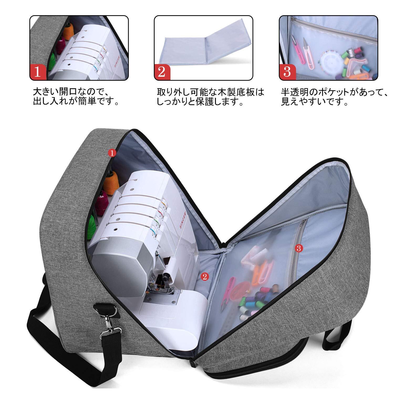保護:耐久性のある外部ナイロン素材とクッション材を入れた内層により、大切なロックミシンを保護して、底部の取り外し可能な木製底板は、機械により優れた保護を提供します。