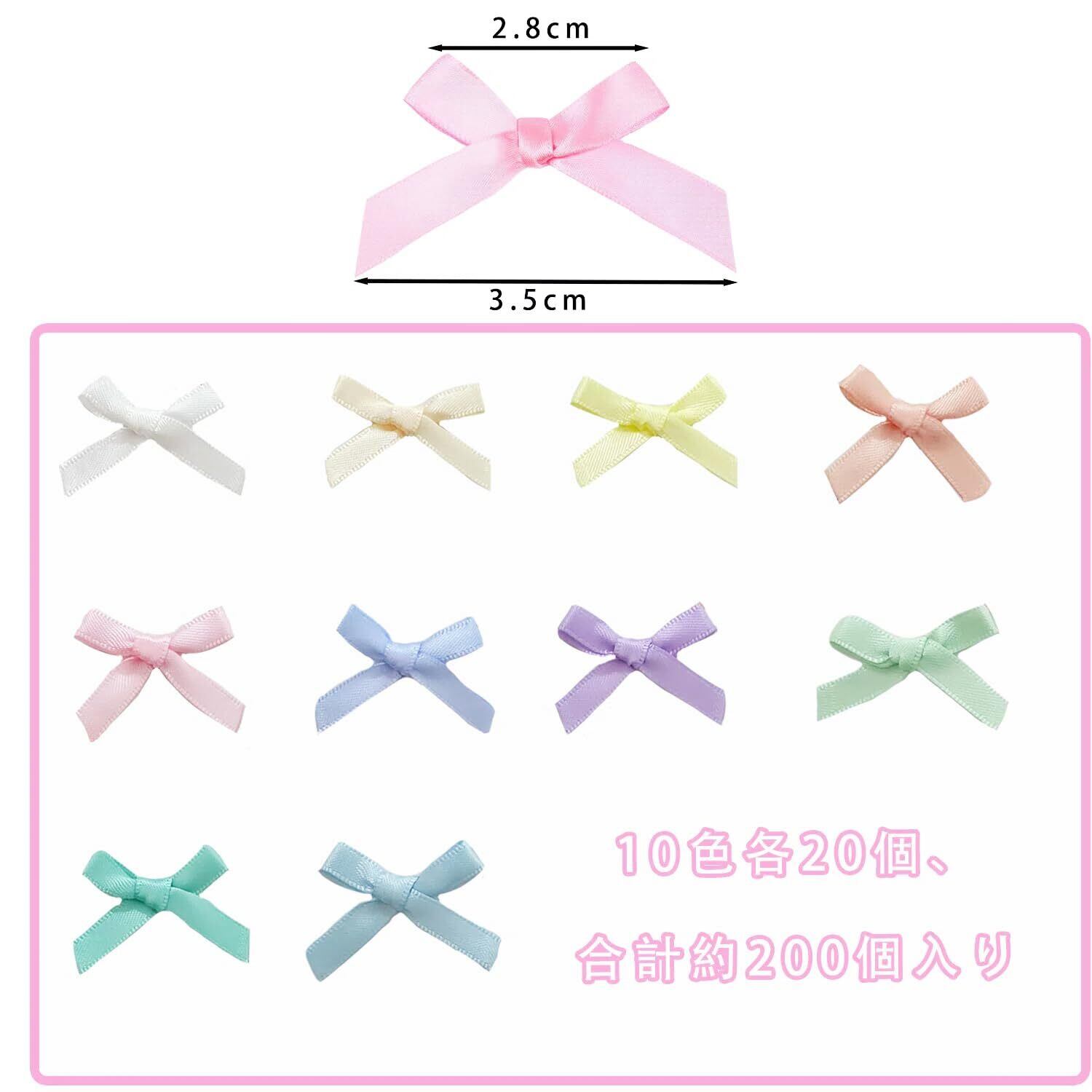 ミニリボンボウ 約200個入り 10色 蝶結びリボンミニギンガムリボンボウ DIY 手作り ハンドメイド 手芸用 縫製工芸 アクセサリー 衣類 ラッピング 飾り 装飾