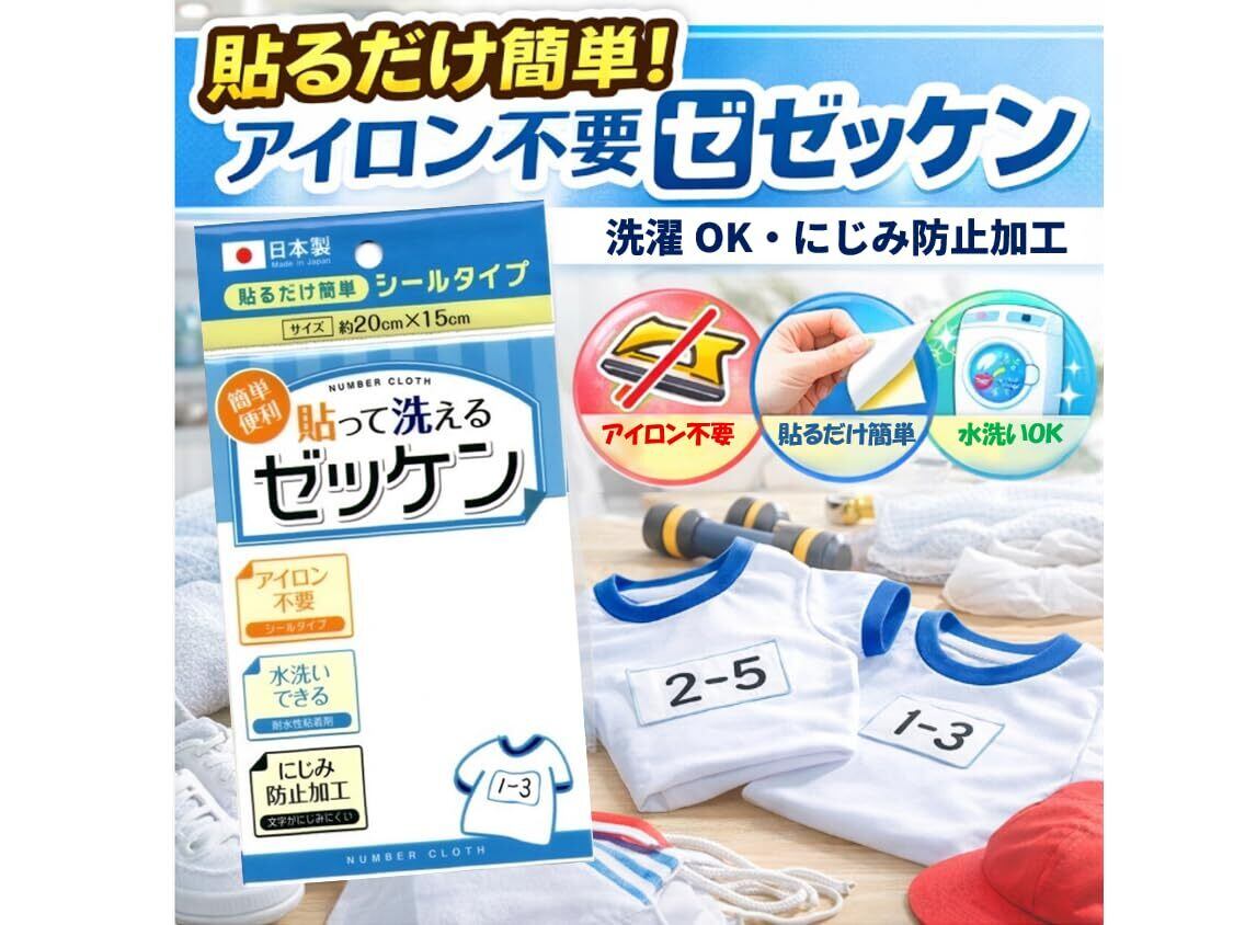 【2022最新】ゼッケン 貼って洗える シールタイプ 名札 ネーム 体操着 簡単 便利 アイロン不要 水洗いできる にじみ防止加工 20cm×15cm