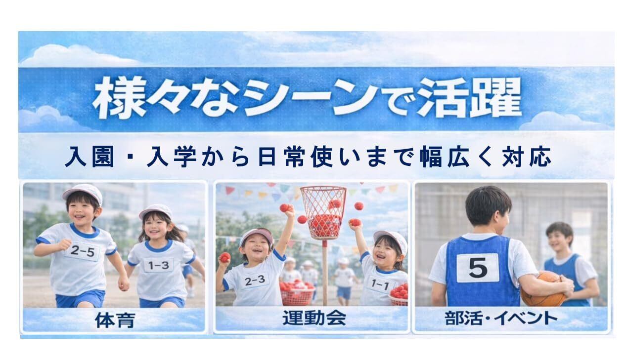 水洗いできる簡単便利なシールタイプのゼッケン,ネーム(名札)です
