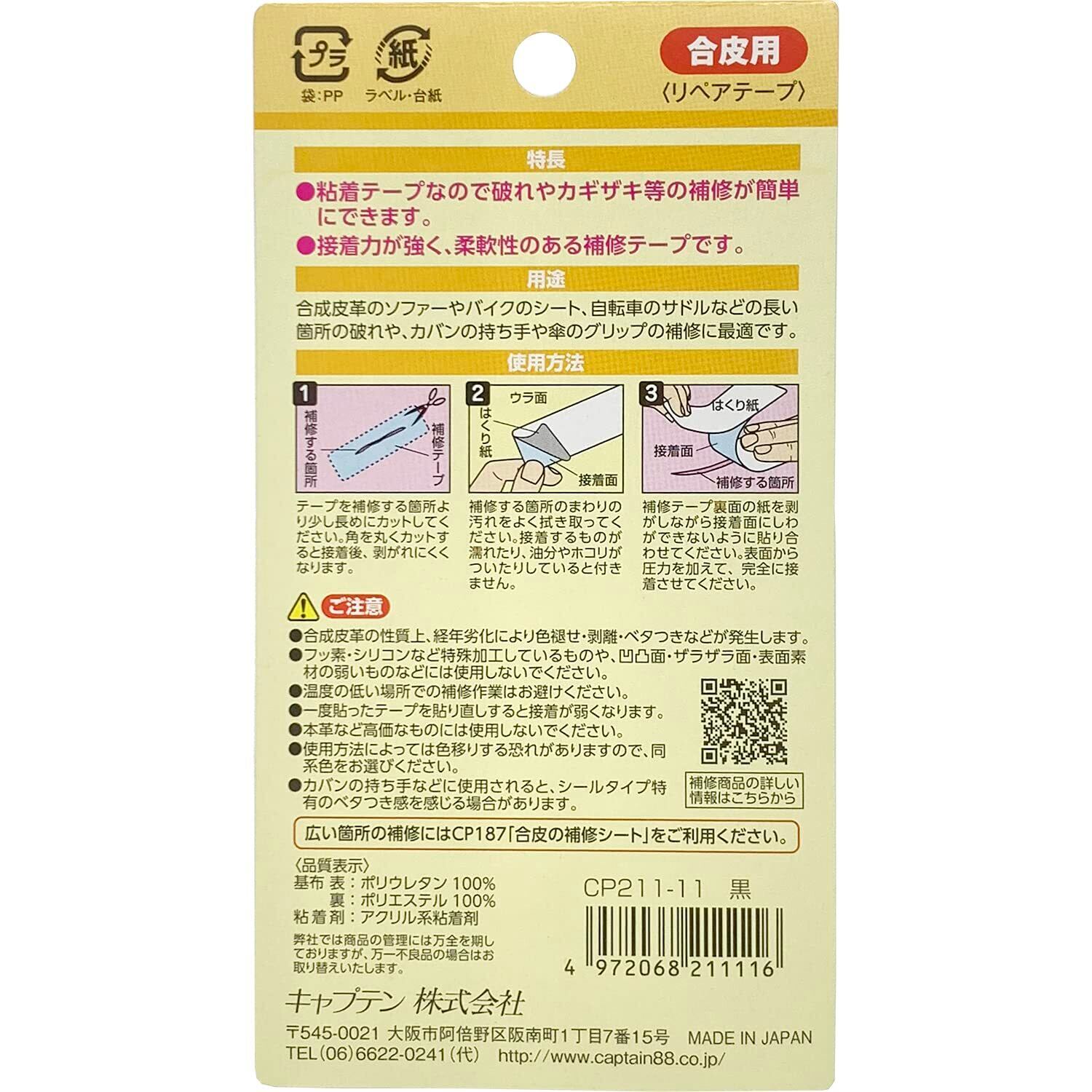 CAPTAIN88 キャプテン 簡単補修シリーズ 合皮の補修テープ 巾25mm×1m巻 #11 黒 シールタイプ CP211