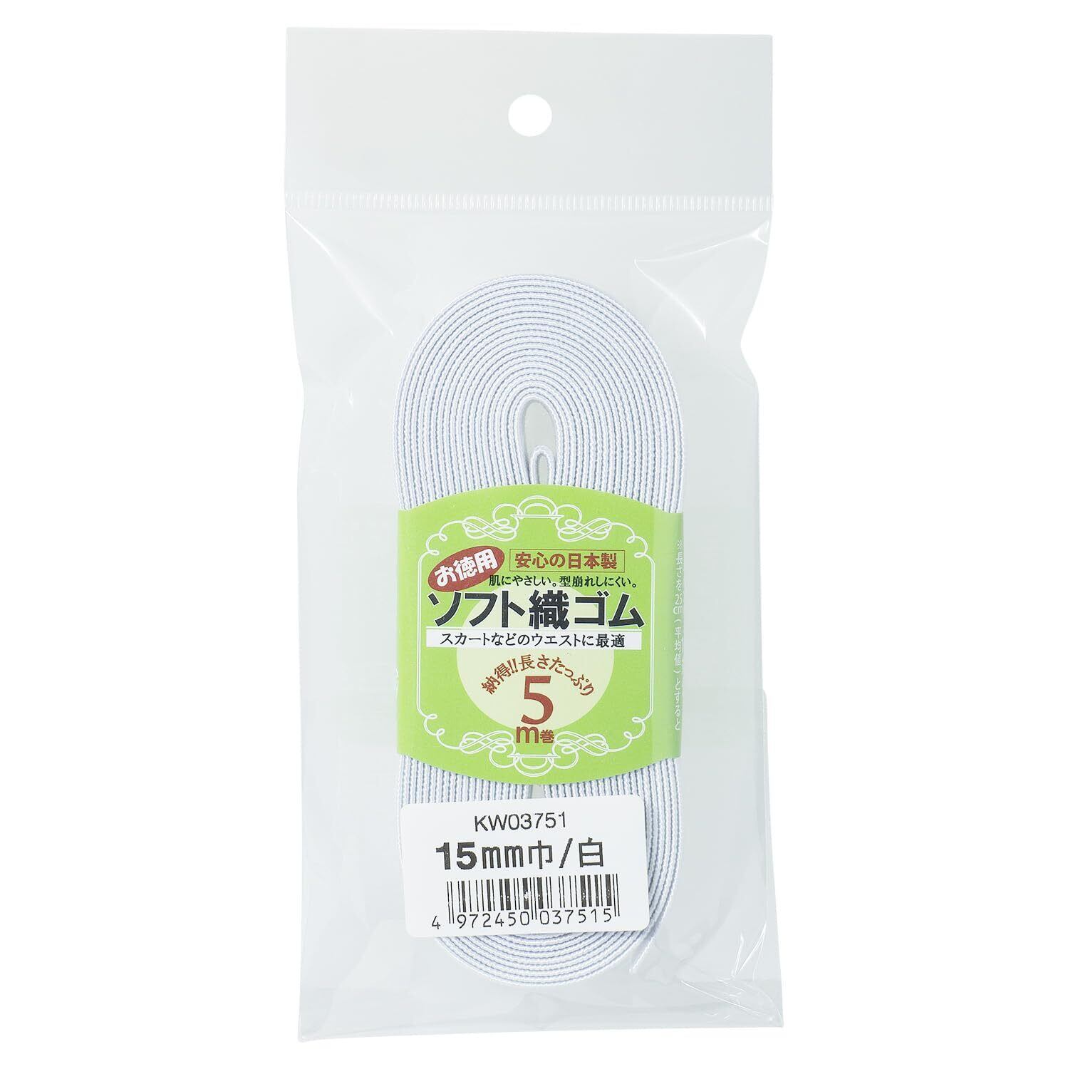 ソフト織ゴム 5m巻 白 (15㎜, 白) ウエストゴム ウエスト 裁縫 裁縫道具 手芸 スラックス スカート パジャマ