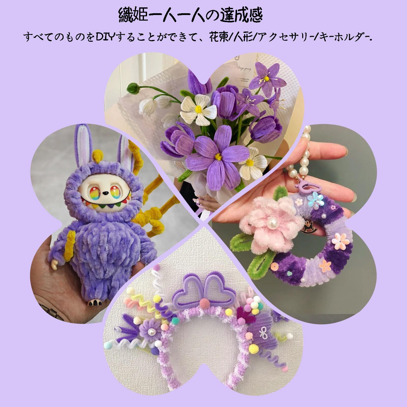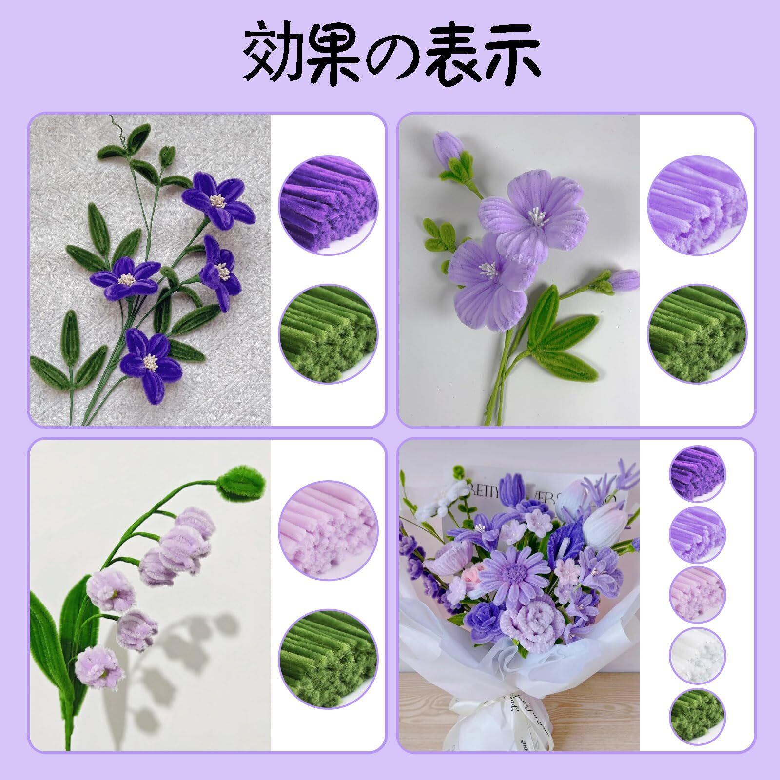 【特価商品】手芸モール 250本 カラーミックス フラワーモール 手作りキット 6mm 花束 モールフラワー キット クラフトモール 工作モール 人工花茎20本フラワーテープ緑1巻 双頭花おしべ DIY 飾り物 造形材料 学校 手作り素材 手芸 用品 記念日 誕生日 母の日 バレンタインデー 贈り物 (すみれ色)