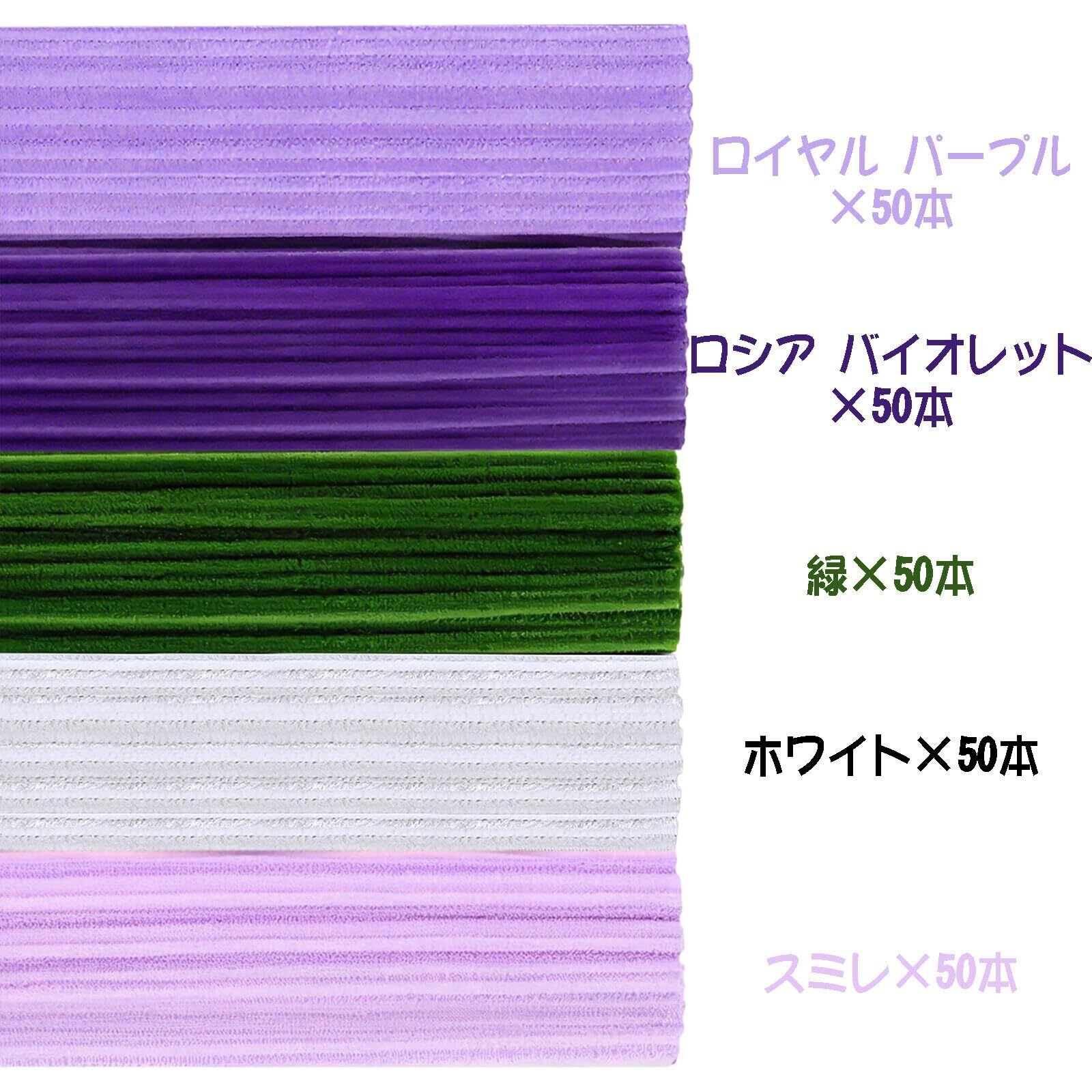 手芸モール 250本 カラーミックス フラワーモール 手作りキット 6mm 花束 モールフラワー キット クラフトモール 工作モール 人工花茎20本フラワーテープ緑1巻 双頭花おしべ DIY 飾り物 造形材料 学校 手作り素材 手芸 用品 記念日 誕生日 母の日 バレンタインデー 贈り物 (すみれ色)