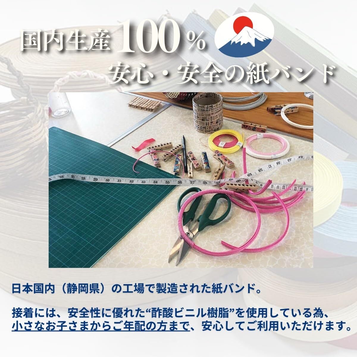手芸用に開発された、バンドクラフトテープのため、 手触りがしなやかで柔軟性に富み、使い勝手がいいことで多くの方からご愛顧いただいています。