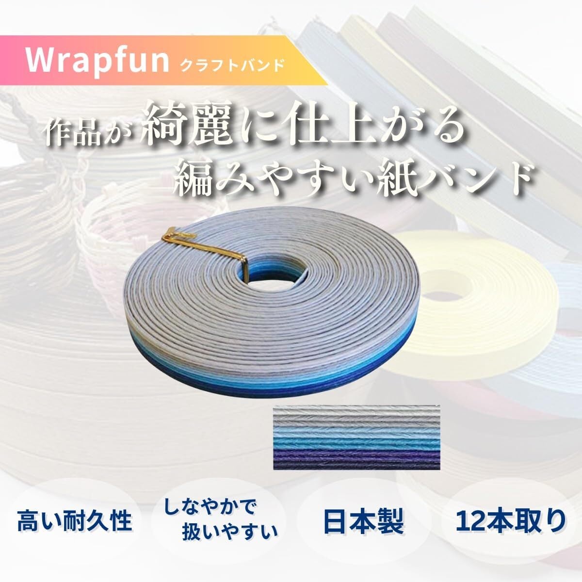 【在庫処分】手芸用ホビーテープ クラフトバンド 紙バンド キット 12本幅 クラフトテープ ペーパークラフトバンド 手作りキット WrapFun ラップファン (オーシャンブルー)