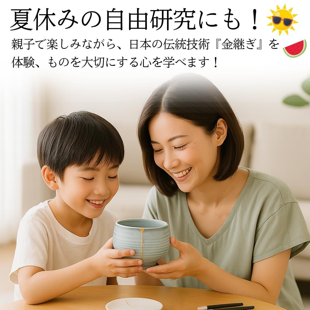 【夏休みの自由研究に最適】夏休みの工作、自由研究で伝統技法が学べる!乾燥時間が短くその日のうちに仕上がるので、小学生の自由研究テーマとして「壊れた器をよみがえらせるサステナブル体験」をレポートできます。