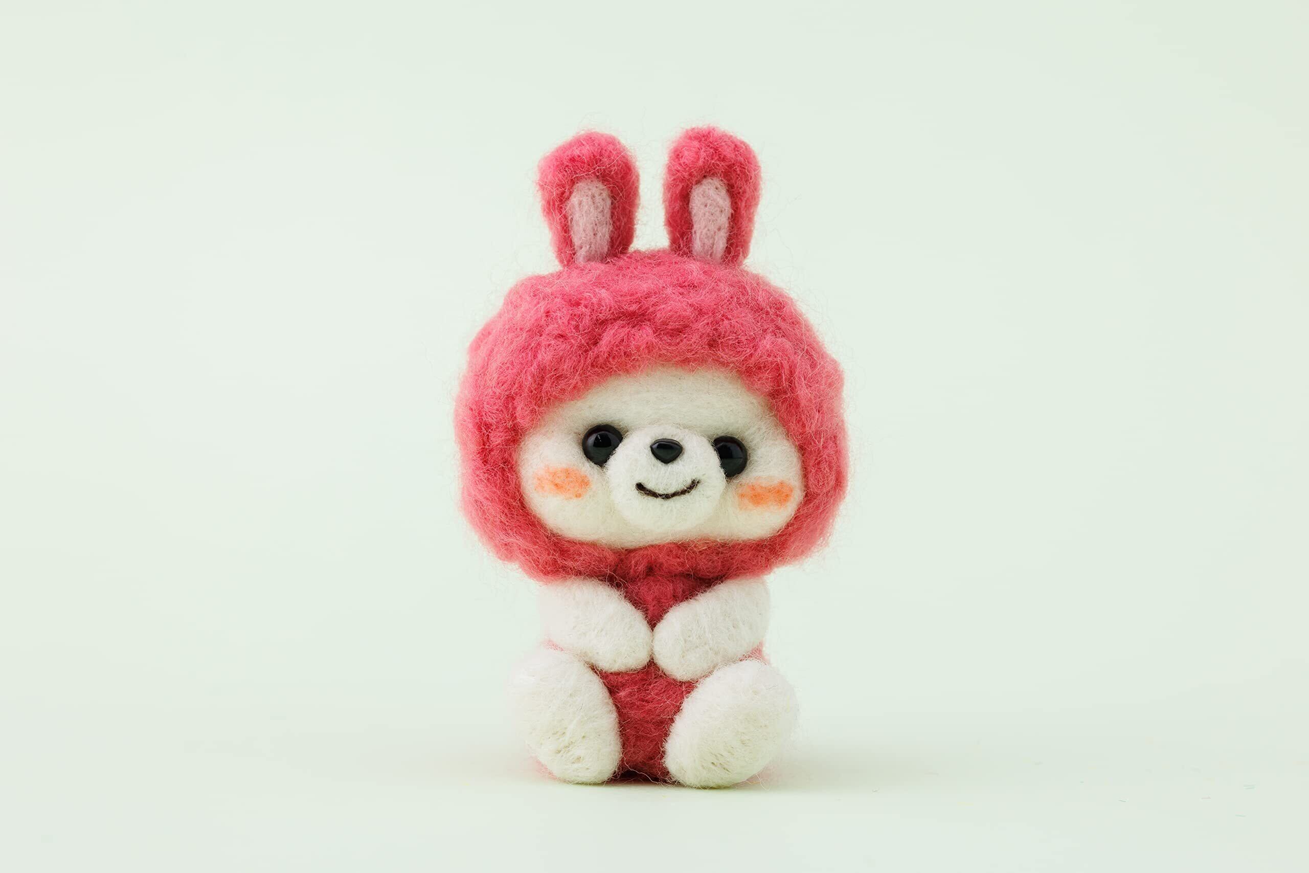 手に乗せた瞬間癒される、季節感あふれる作品が特徴のsayamokoの羊毛マスコット、モコモコうさぎくまちゃんが作れる手芸キットです。