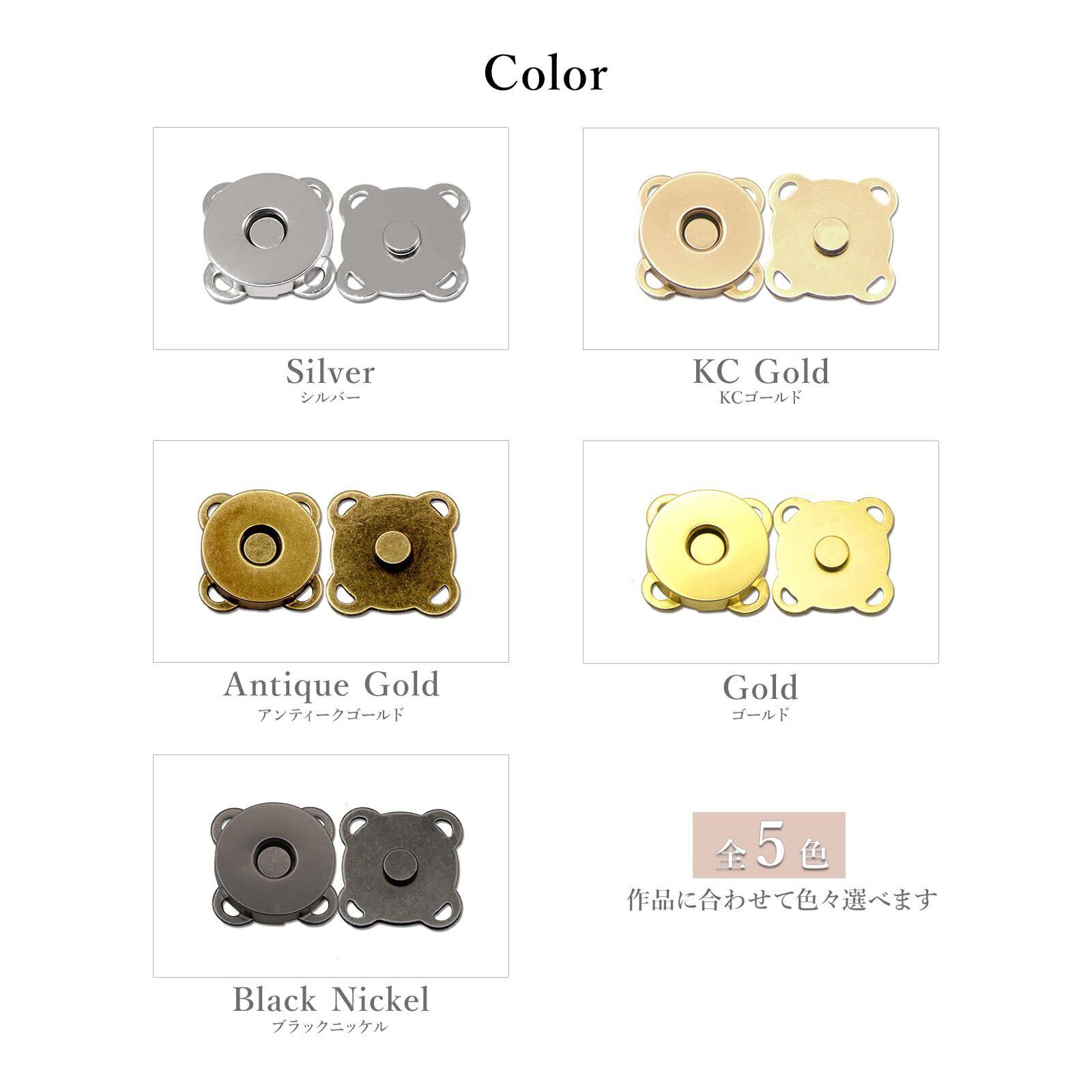 用途:本品は縫い付け式タイプのマグネットホックです。針と糸でしっかりと固定できる構造で、バッグやカバン、洋服、財布、ポーチ、レザークラフトなど、さまざまな手芸・ハンドメイド作品の留め具として活躍します。磁力は強すぎず弱すぎず、開閉がしやすく使い勝手の良い仕様です。