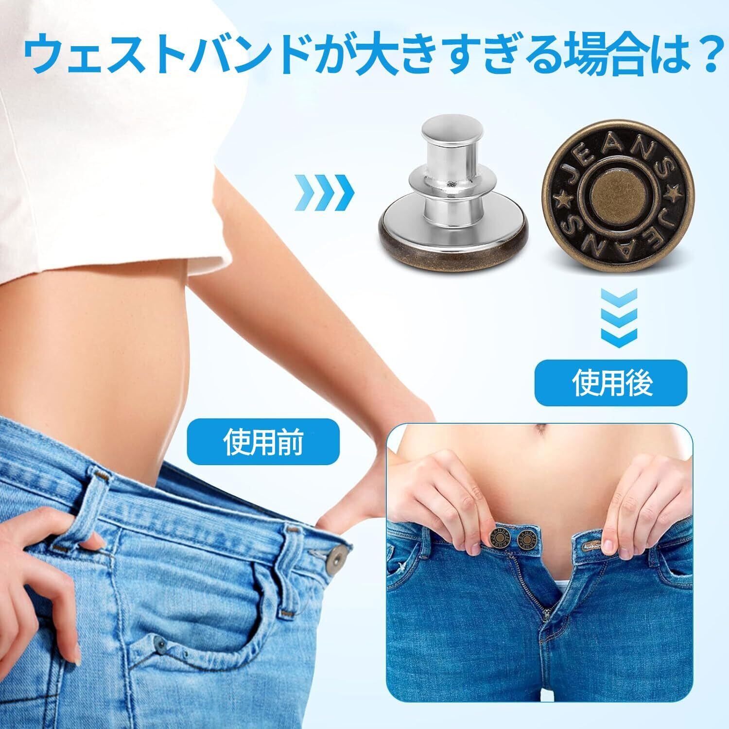 ウエスト 調整 ジーンズ 調整ボタン 1セット8個入り 調節可能な金属ボタン メタルボタン ウエスト調節ピン 取り外し可能 ウエストシンカー 縫製不要 交換用ピース