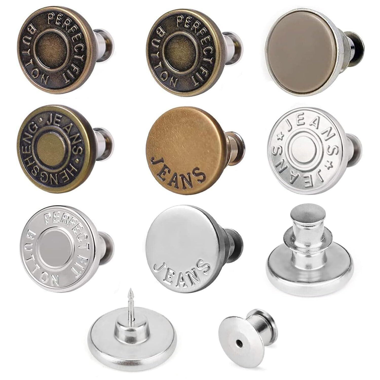 【特価商品】ウエスト 調整 ジーンズ 調整ボタン 1セット8個入り 調節可能な金属ボタン メタルボタン ウエスト調節ピン 取り外し可能 ウエストシンカー 縫製不要 交換用ピース