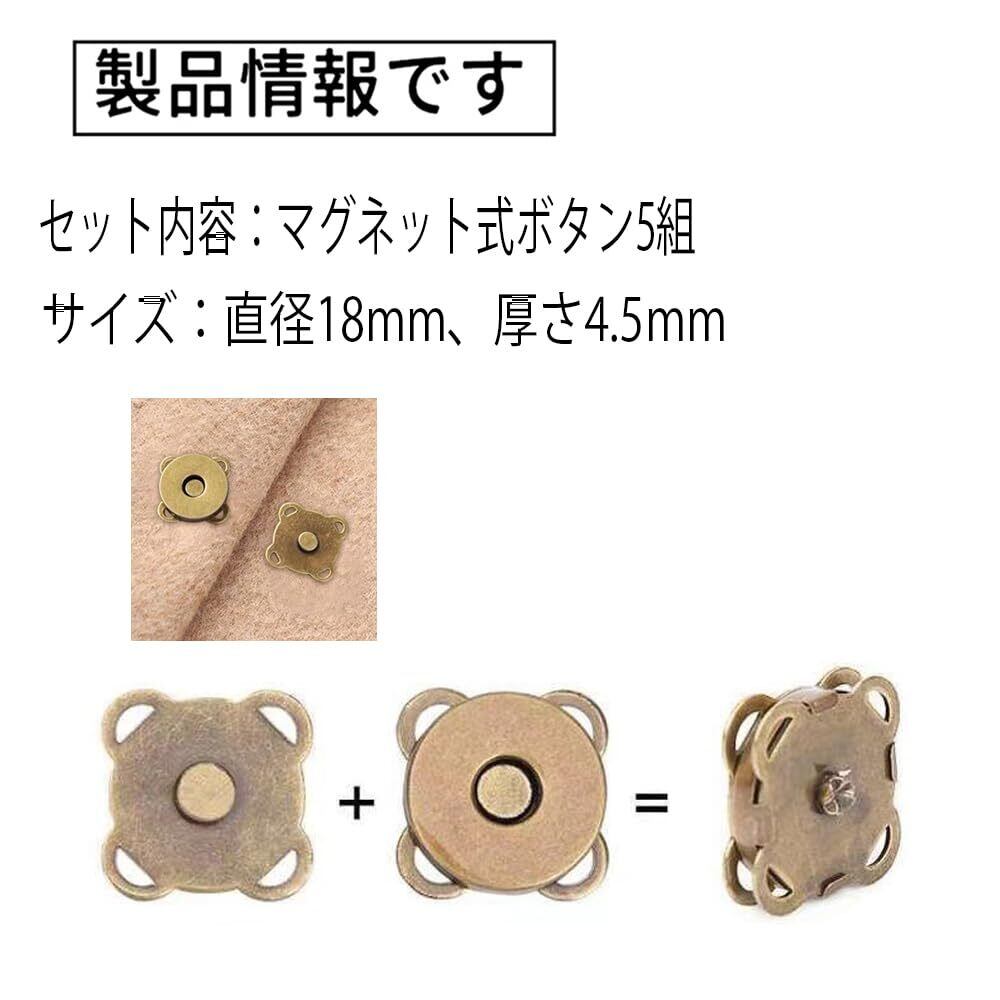 【新春セール】マグネットボタン 5組セット 18mm 磁気ボタン 縫い付け式 留め具 DIY 手芸用品 (シルバーホワイト, 18mm)