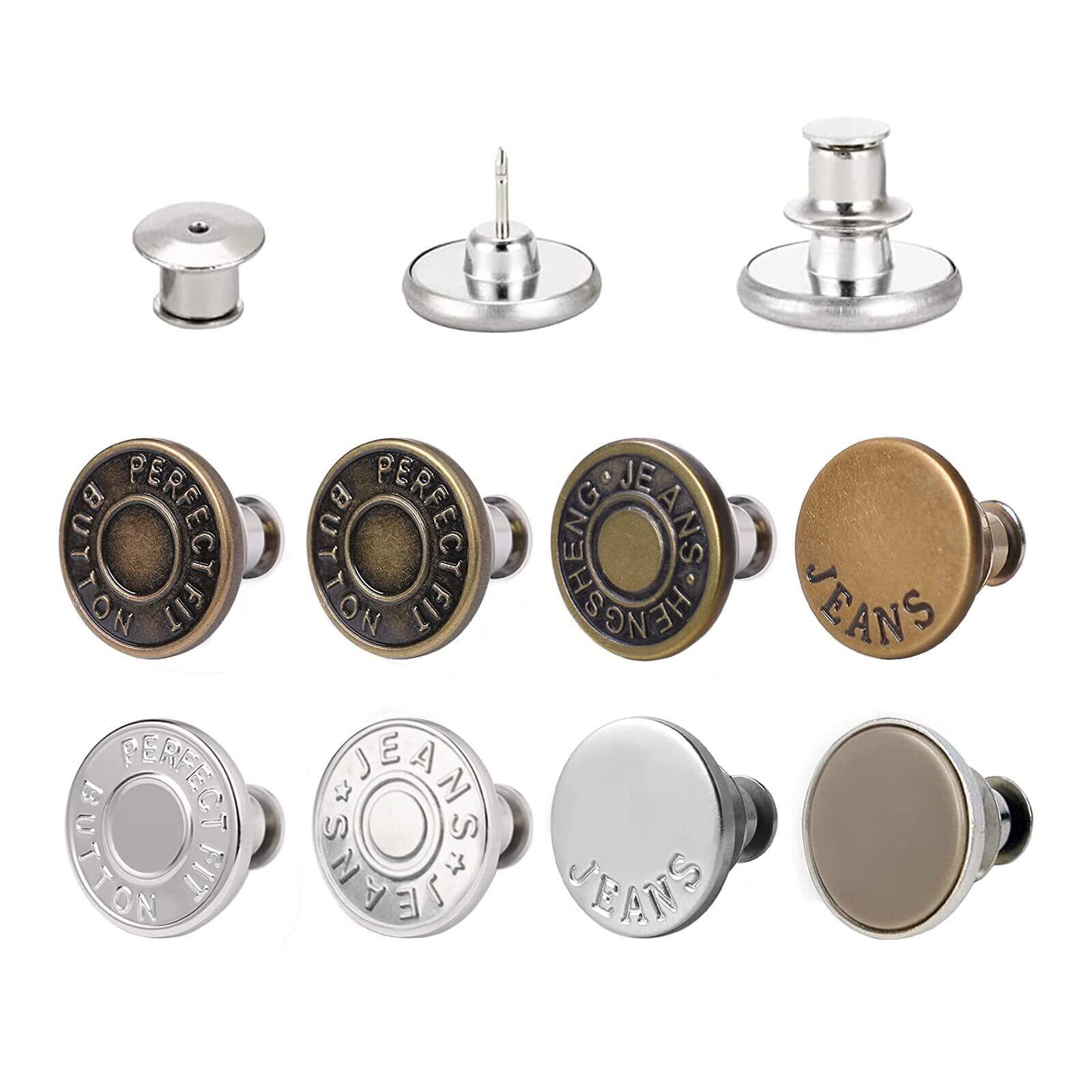 【在庫処分】ジーンズ 調整ボタン ボタンピン 金属ジーンズ ウエスト調整 縫い目ない ジーンズ 取り外し可能 取付簡単 縫製不要 ウエスト調整 ピン 置換 交換用 調節可能な金属 (1セット8個)