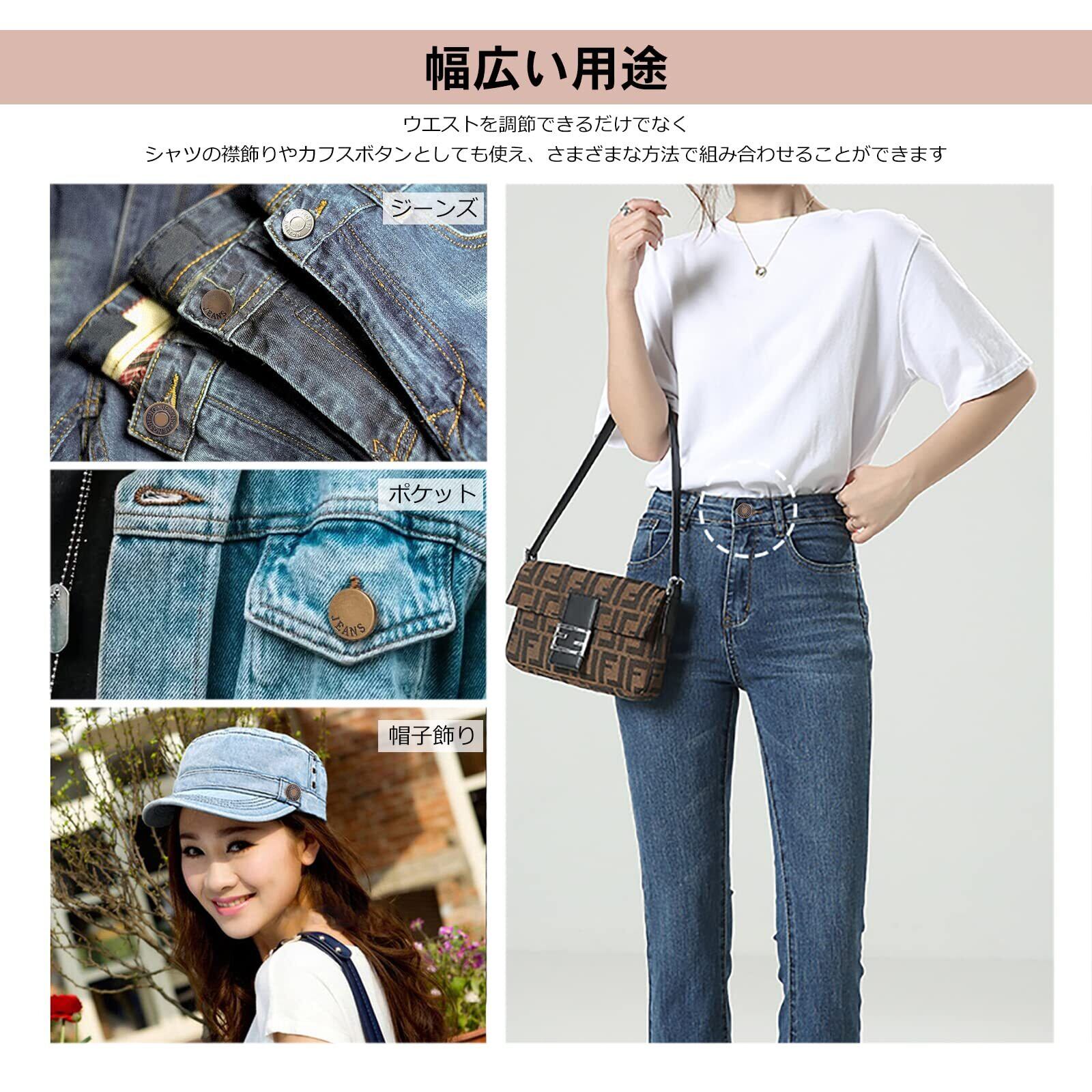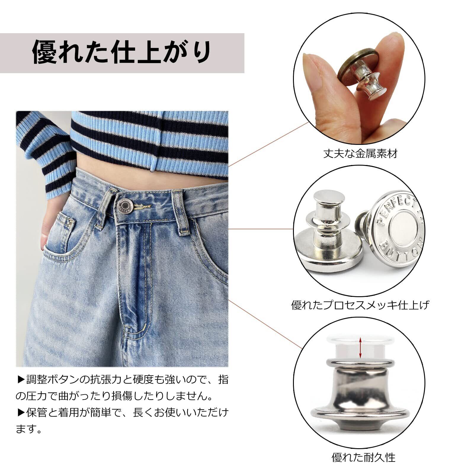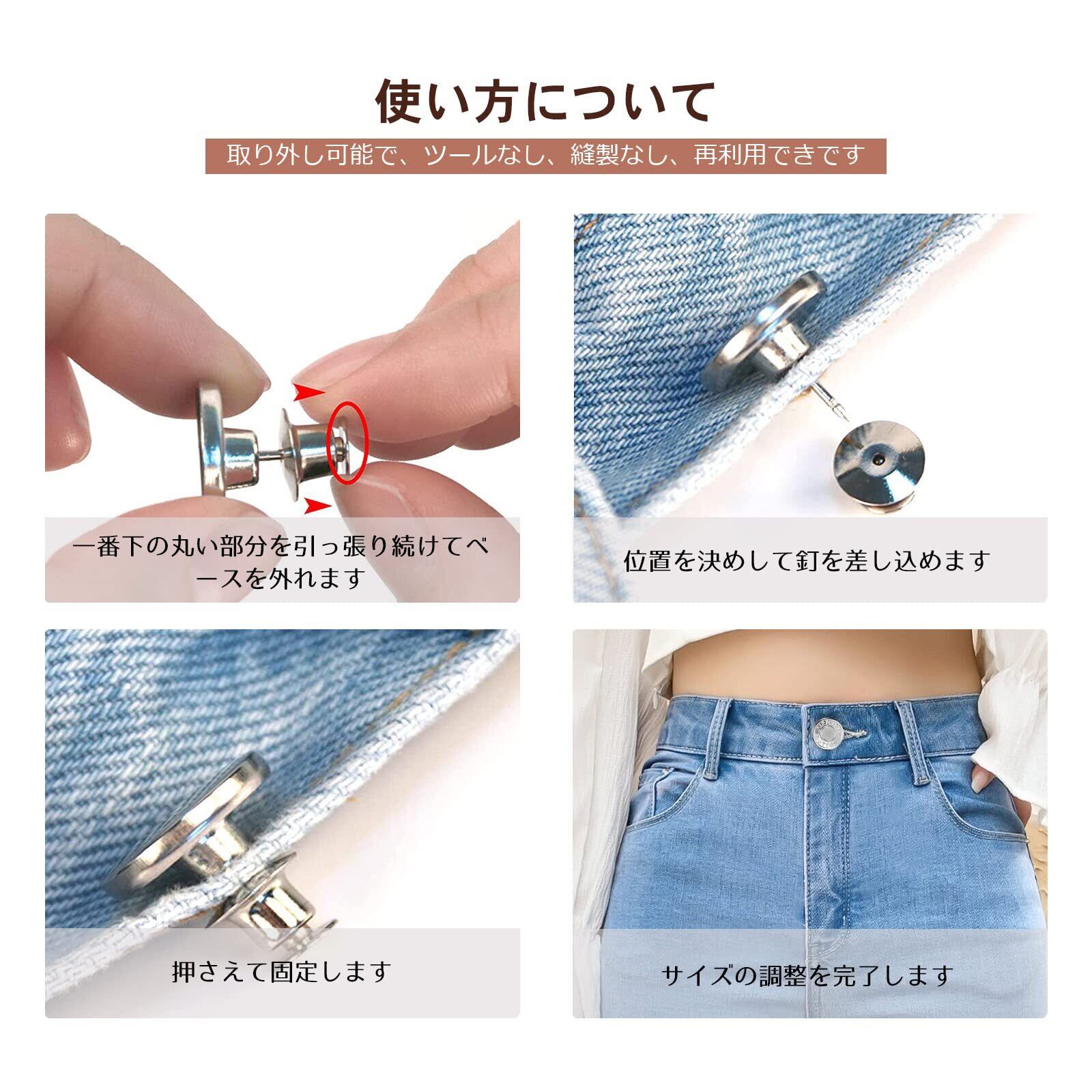 ジーンズ 調整ボタン ボタンピン 金属ジーンズ ウエスト調整 縫い目ない ジーンズ 取り外し可能 取付簡単 縫製不要 ウエスト調整 ピン 置換 交換用 調節可能な金属 (1セット8個)