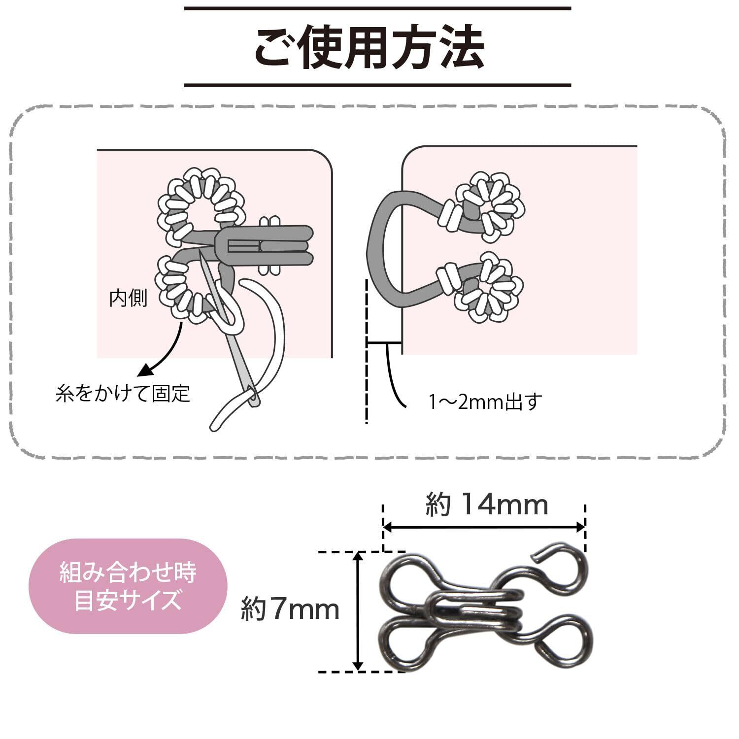 【特徴・用途】スカートやパンツのウエスト、ブラウスなどの襟を目立たず留められるホックです。