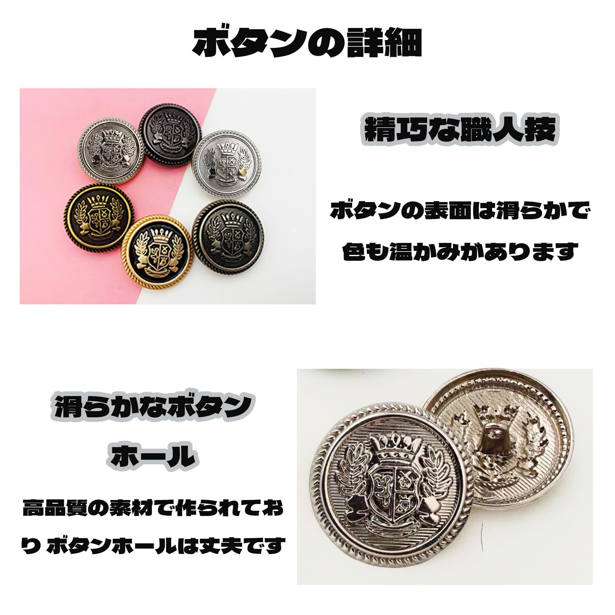 ボタンセット 16個セット ブレザー ボタン 直径15mm/20mm/25mm メタル 裁縫やハンドメイドにぴったり 学ラン スーツ コートなど 洋服 交換用 おしゃれ アクセサリー DIY 手作り(こぎんいろ)