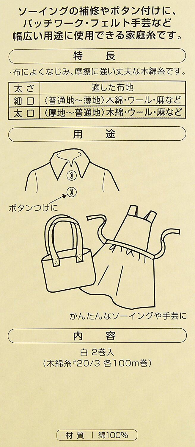 【2022最新】Clover 家庭糸 太口 100m巻 各1個入り 白・黒 26-575
