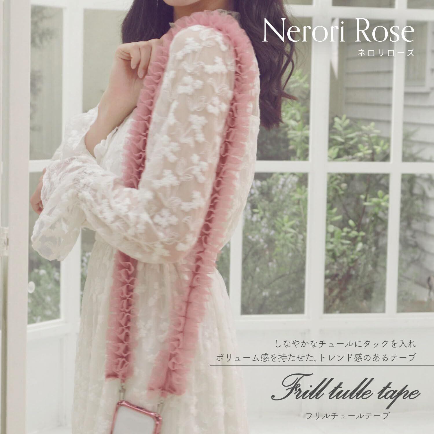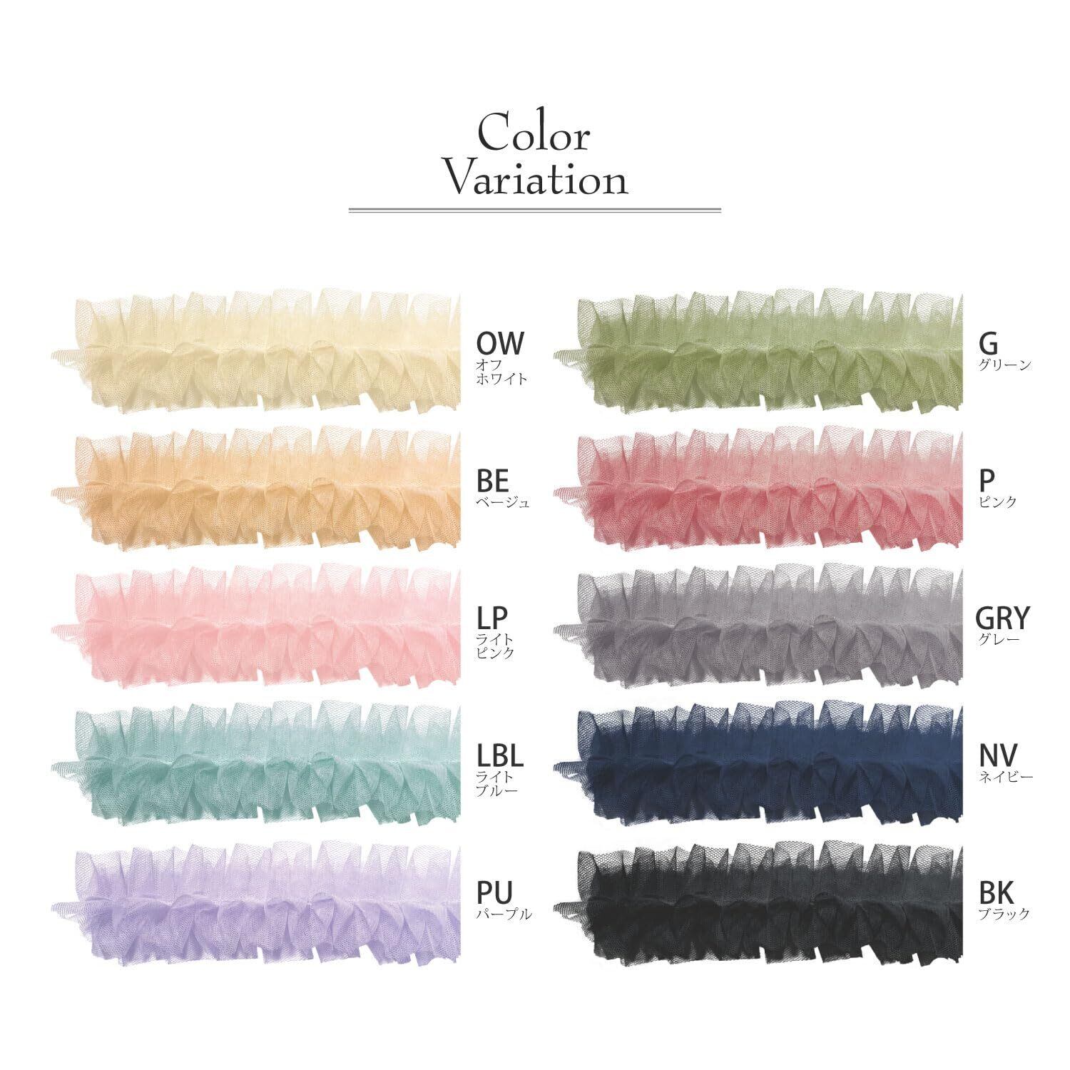 しなやかなチュールにタックを入れボリューム感を持たせた、フリルが可愛いフリルチュールテープです。