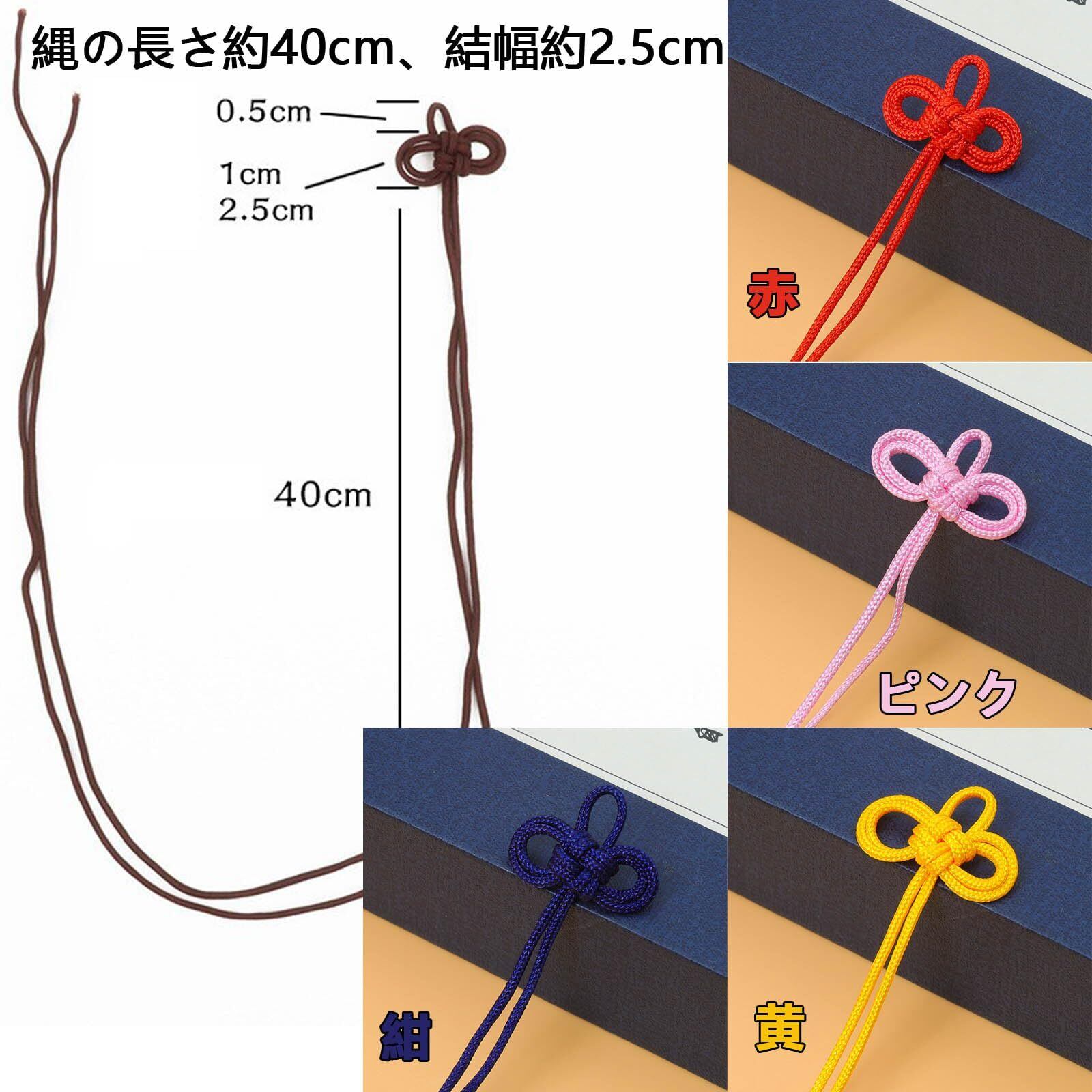 紐全長:約40cm、結び幅:約2.5cm。 色:赤*10・ピンク*10・黄*10・紺*10。赤は幸運と繁栄、ピンクは愛情と幸せ、黄色は活力と成功、青は安定と健康を象徴します。 材質:ナイロン 双葉結び:双葉結びの護符縄は、日本の伝統的な結びのデザインです。 広範な用途:日本の伝統的な祝日、例えば正月、元日、中秋節など、または他の特別な機会においても、それらは最高の装飾品で、たちまち祝祭的な雰囲気を醸し出すことができます。ハンドメイド愛好家にとっても、これらリボンは手に入りにくい創造的な素材で、これらのリボンから美しいハンドメイド製品を作り、友達に祝福と真心を贈るためのユニークな贈り物とすることができます。