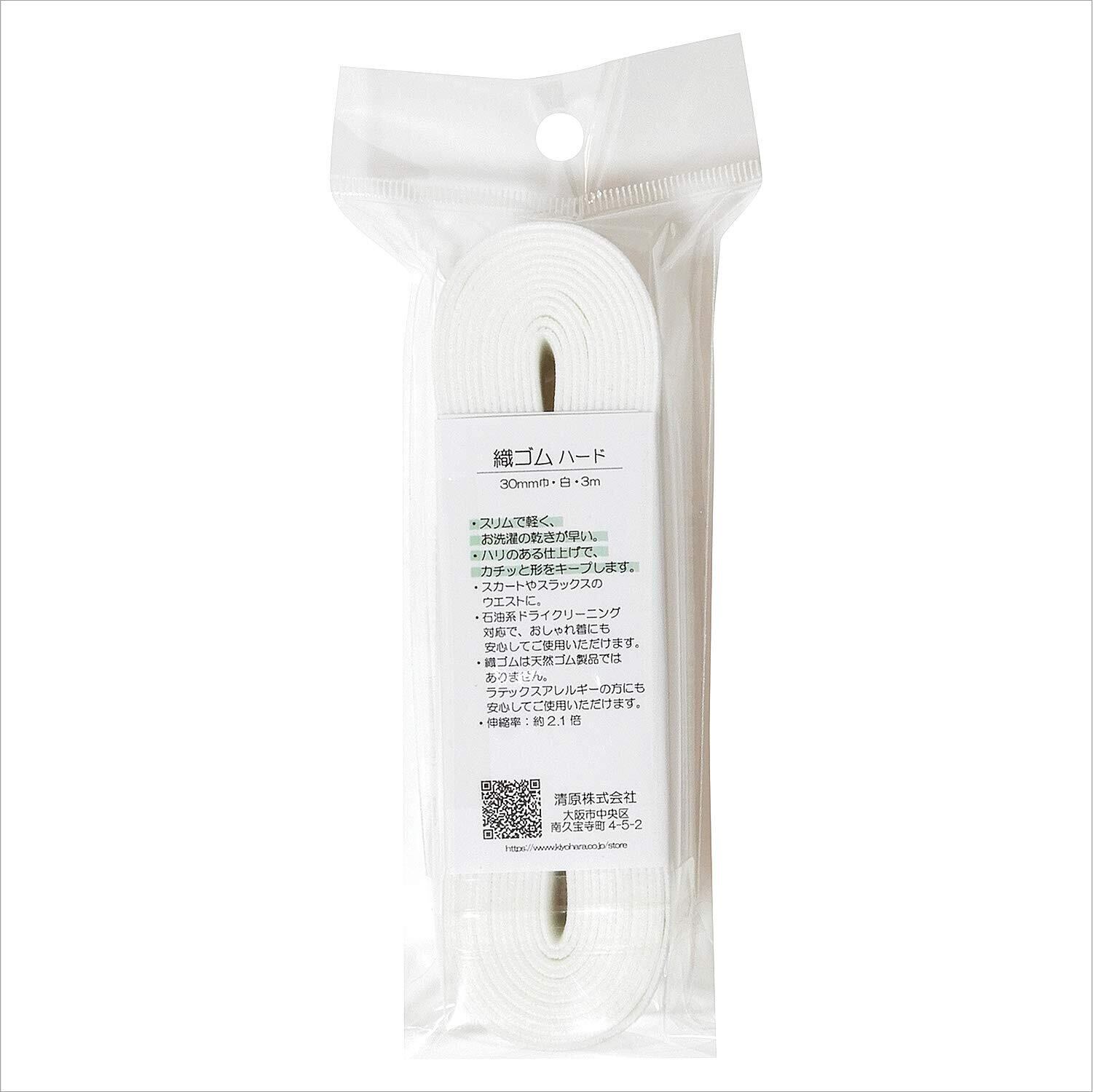たっぷり3m入った、お徳用パック!織ゴムハード:30mm巾は、スカートやスラックスのウエストに最適です。ハリのある仕上げで、カチッと形をキープします。