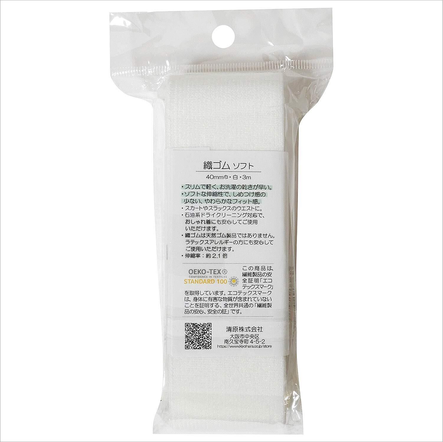 KIYOHARA サンコッコー 織ゴムソフト 3m 40mm巾 白 SUN41-82