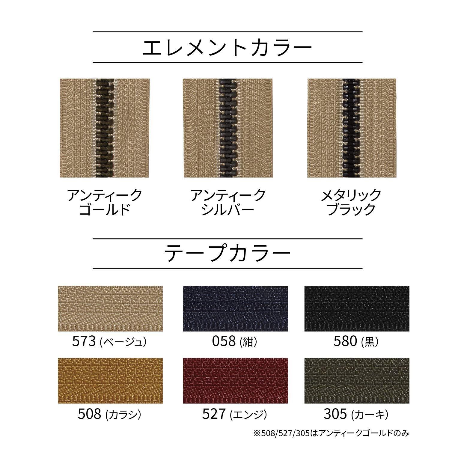 素材:テープ/ポリエステル、エレメント/ポリアミド、スライダー/亜鉛合金