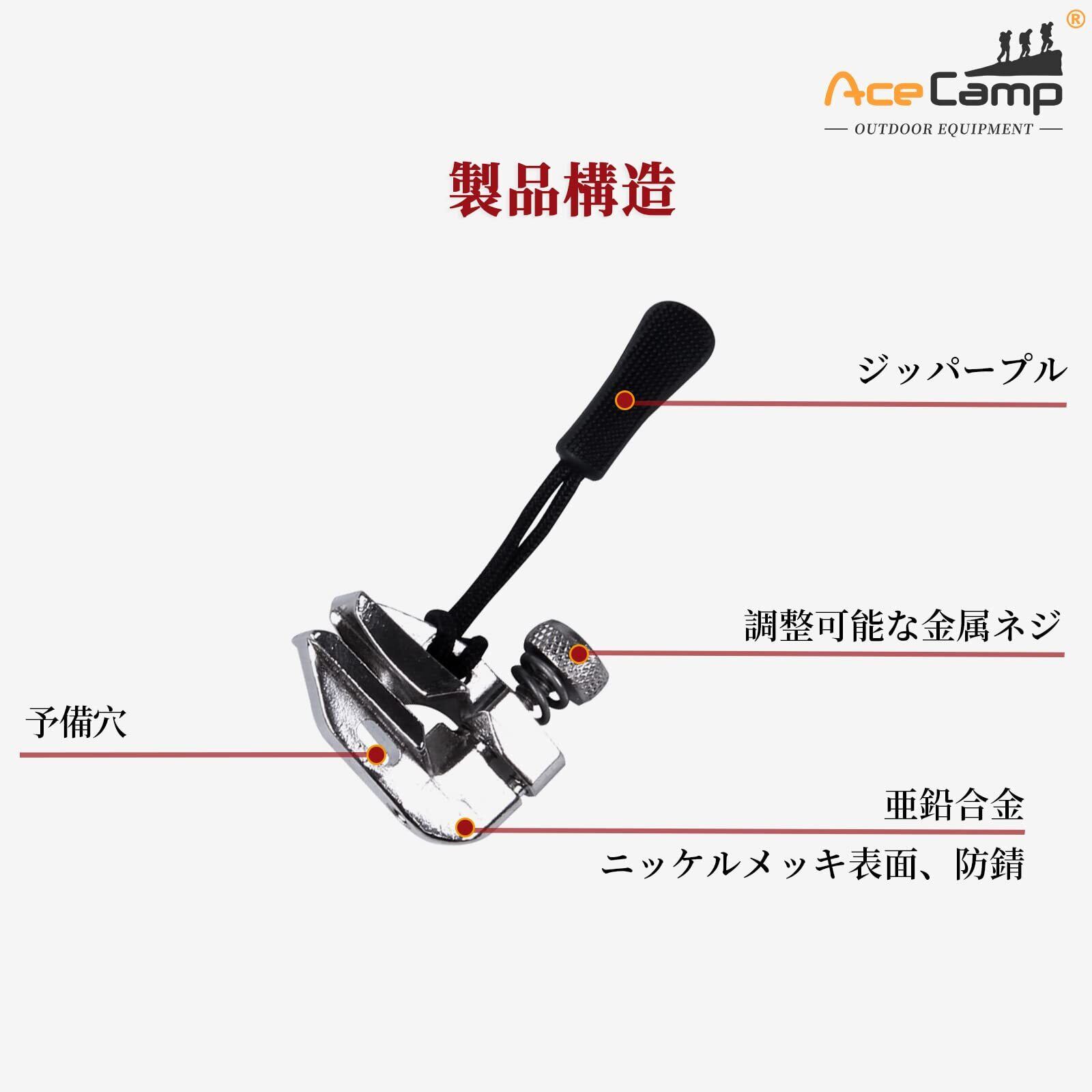 AceCamp 无縫製交換用ファスナー、ジッパー修理キット プルタブ(ブラック、ミディアム)