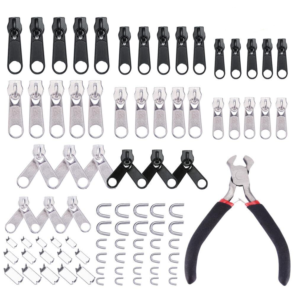 【在庫処分】ZHICHUANGW 85個セット ファスナー 修理 スライダー 交換工具 付属 専用プライヤー ファスナー スライダー 多機能 DIY メンテナンス 衣類 バッグ テント 寝袋 修理用