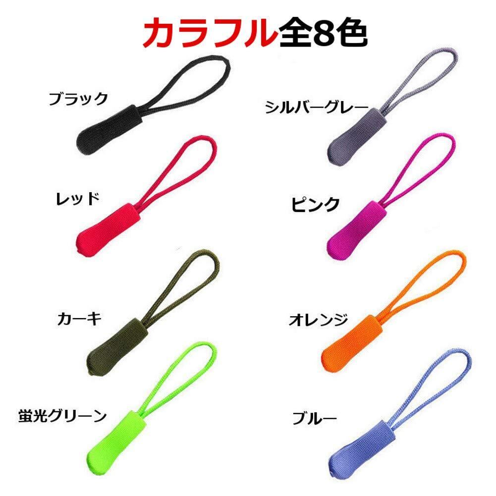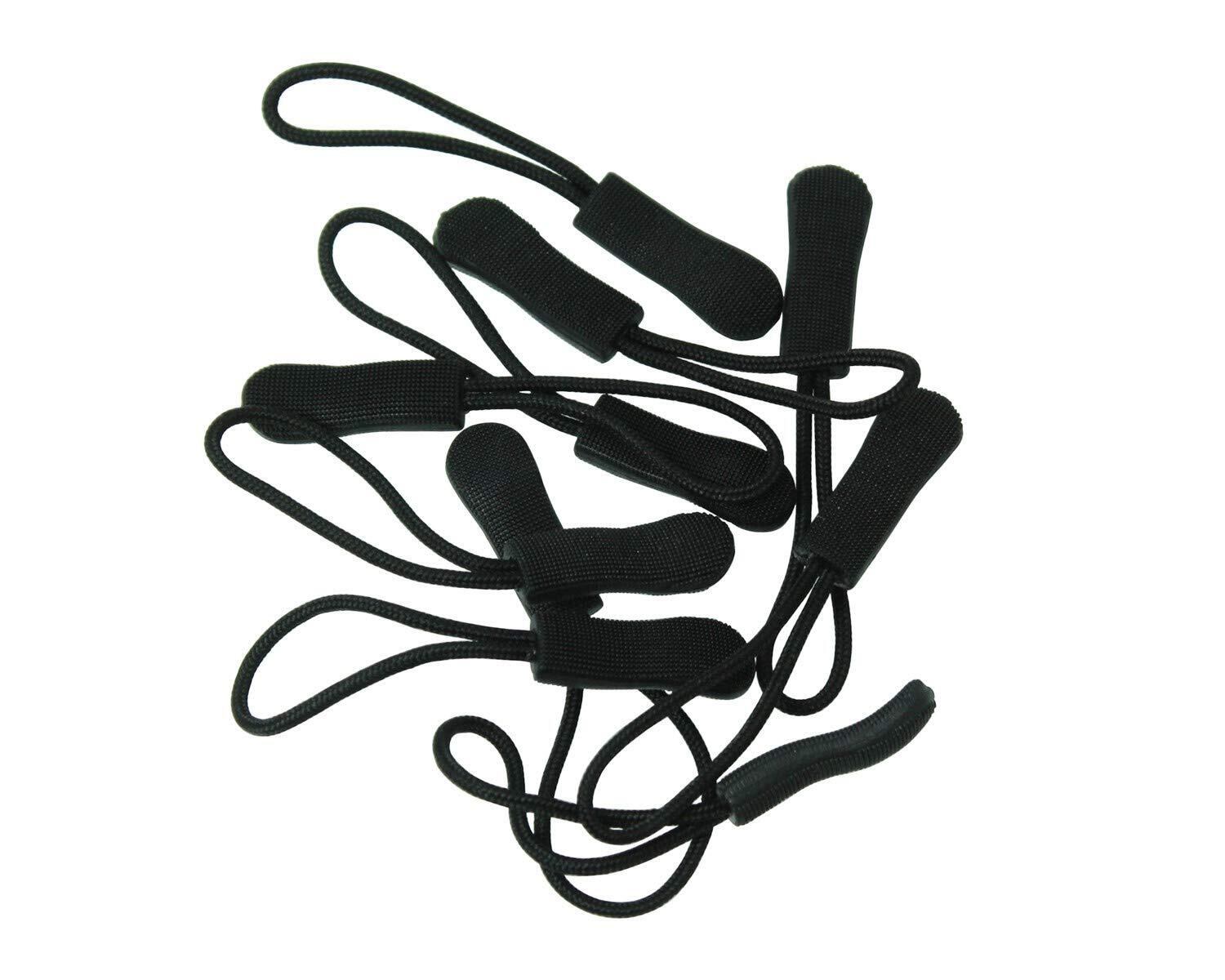 【在庫セール】ジッパープル ファスナー チャック 開閉 楽々 取り付け簡単 8カラー 10本セット つかみやすい ノンスリップ ジッパータブ プルコード (ブラック10本)