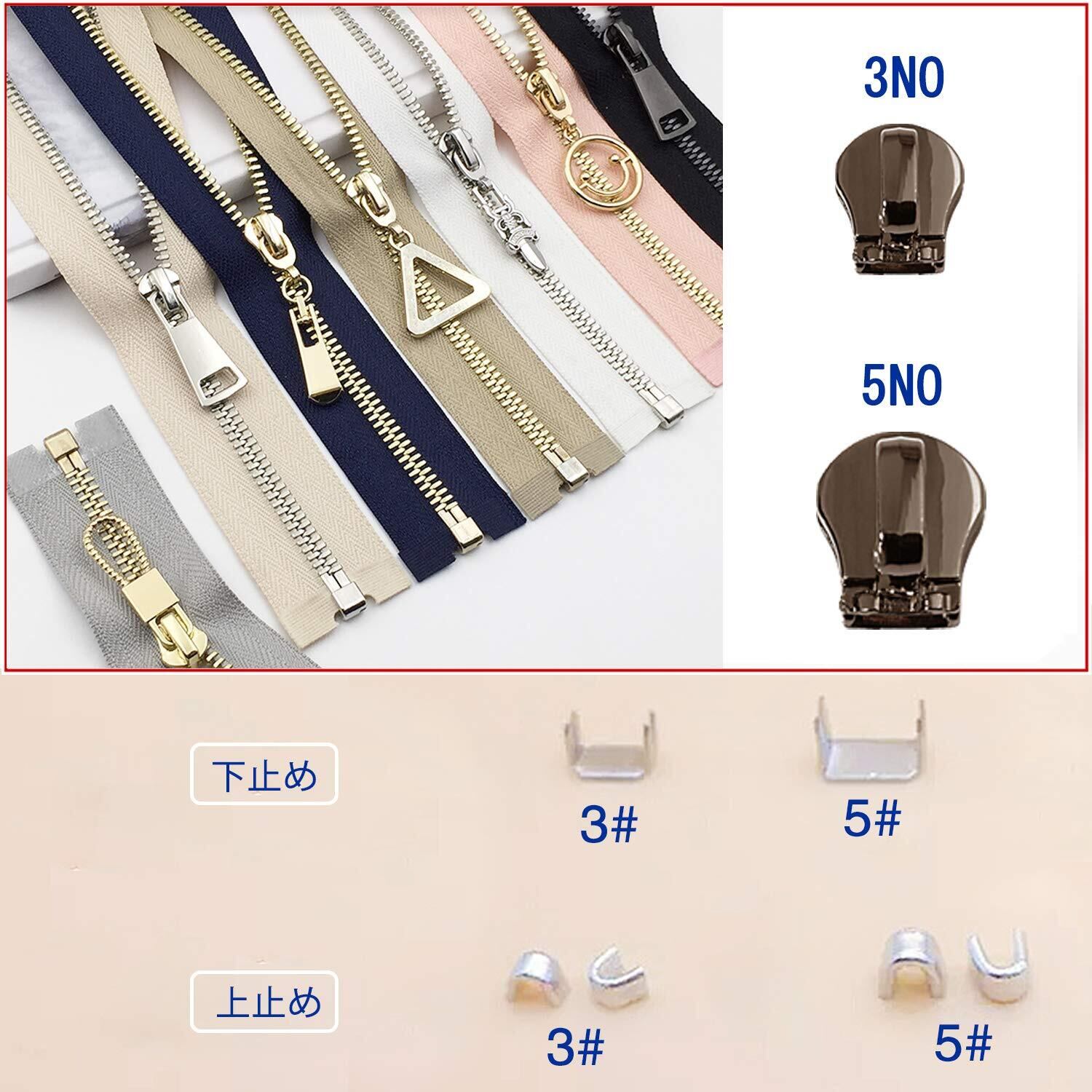 【2022最新】メタルスライダー 3NO 5NO メタルファスナー スライダー 簡単便利 diy 手芸 衣類 カバン 靴 財布 バッグ ジャケット パンツ ジッパー 交換用 修理用 修理屋さん 上止め付き(38PCS)