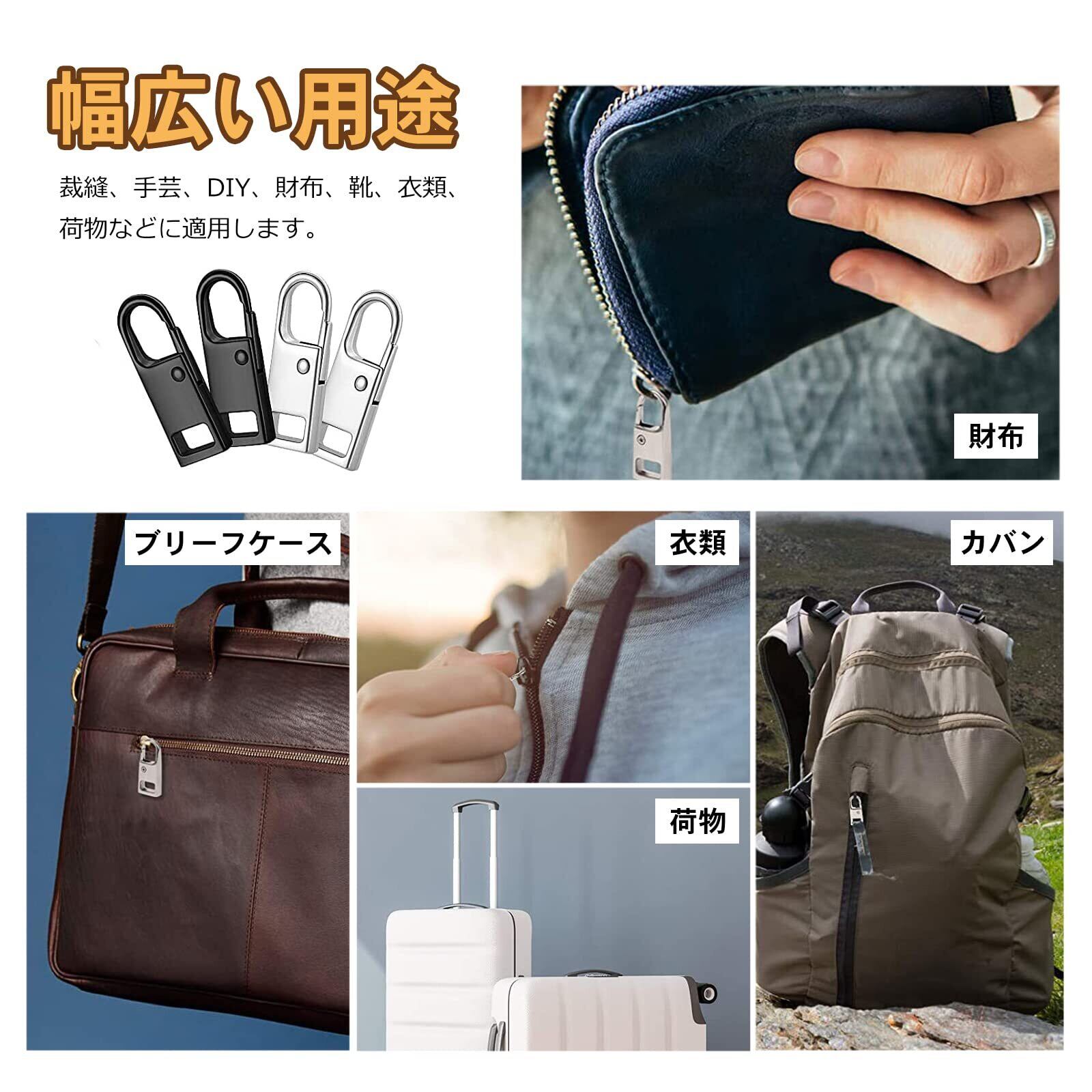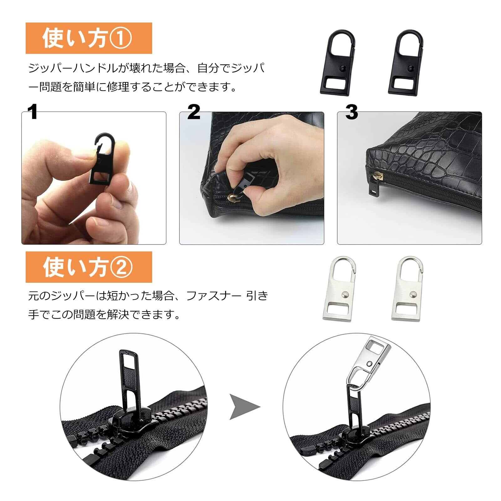 ファスナー 引き手 交換用 ジッパー ジッパー パーツ ファスナー 修理キット ファスナー 持ち手 交換 ファスナー引き手パーツ (黒+銀)